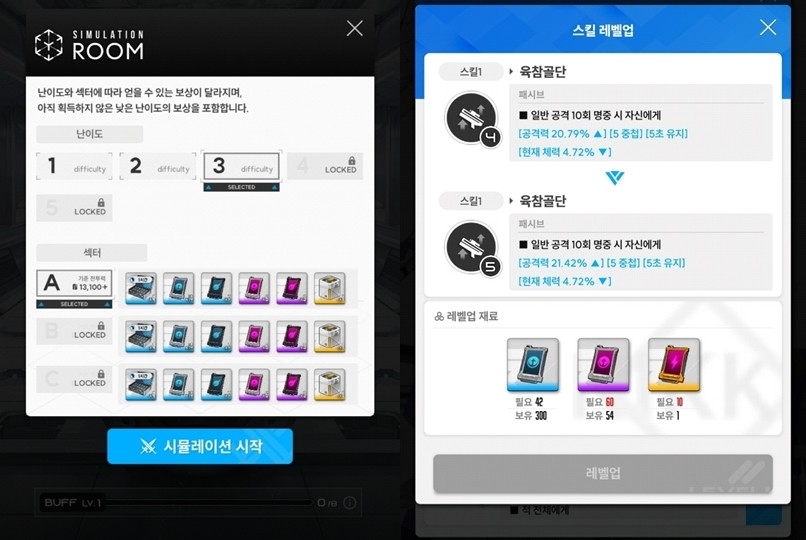 模拟室几乎是技能升级所消耗材料的唯一来源,但因为开启新难度时所需的战力相当高,绝不是简单的内容。