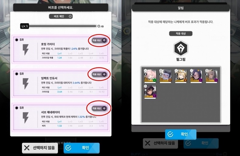 因此,在选择Buff之前,您必须单击“应用对象”按钮,确认应用的对象包含要在模拟室中战斗的角色,并获得最需要的Buff。