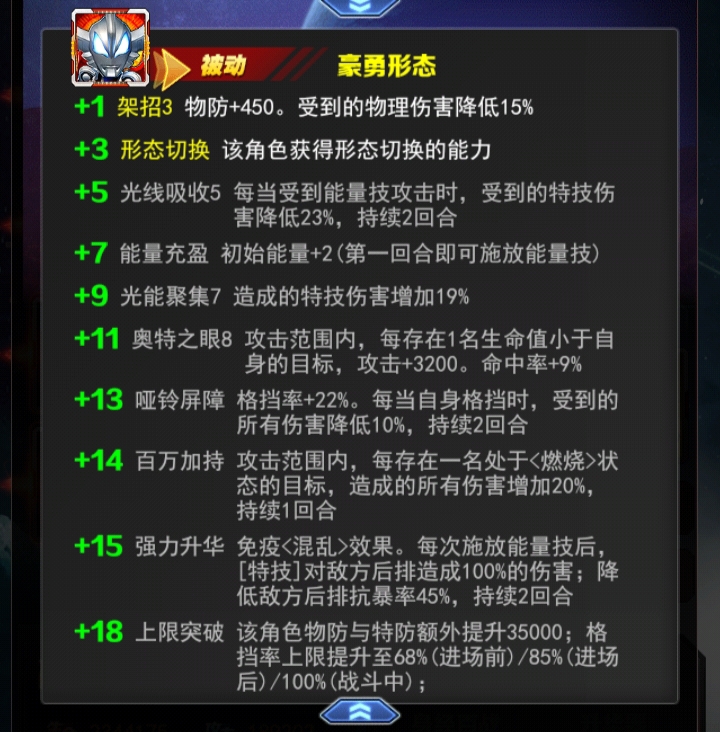 能量技能解析:后排低比例伤害提高受伤这个不错大概辅助还是可以的