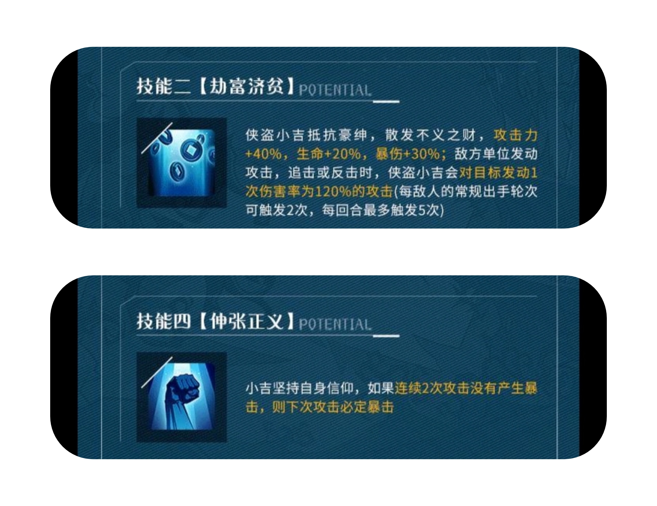 被动二:第三次攻击必定暴击,搭配[追击机制]的频繁出手,稳定保障了“小吉”的暴击输出伤害