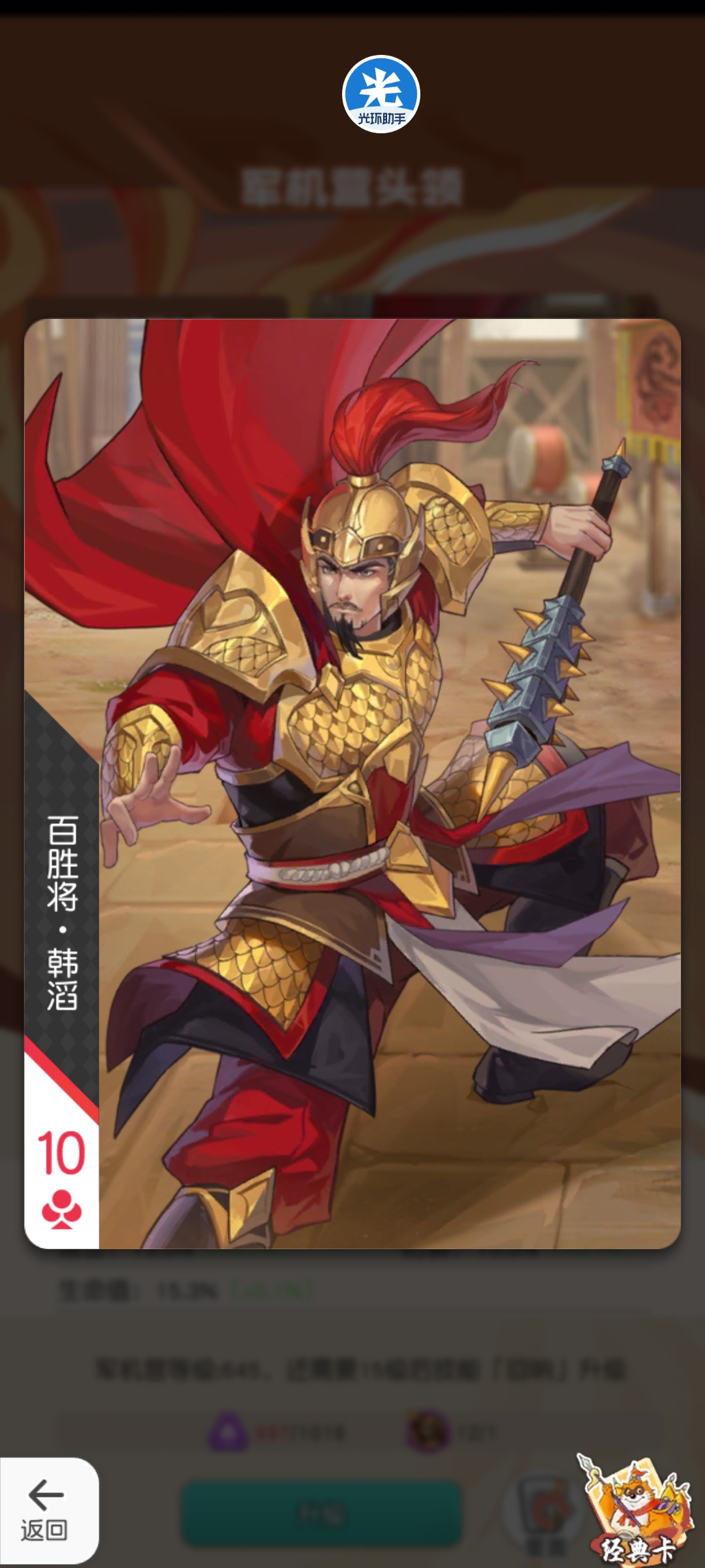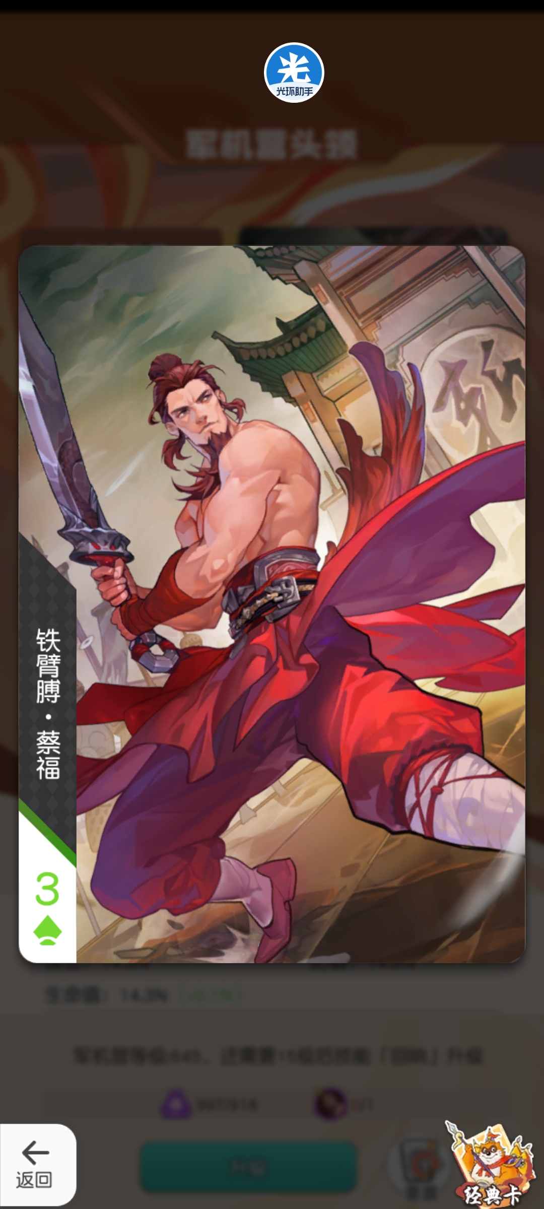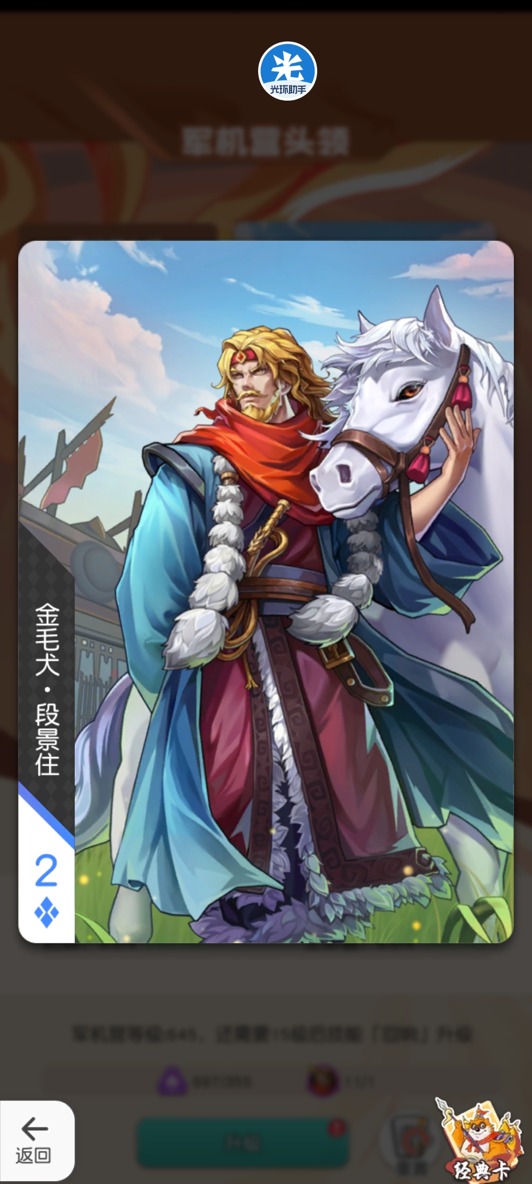 培养建议:增强智力英雄的魔法免伤,emmmm其实我是想排在T3的,但是考虑到好歹给一些工具人智力英雄配上之后,可以顶一手穆弘,考虑到穆弘最近的表现还是可以的。属于差不多彩了就点,没彩也不用特地去抽的副将卡。