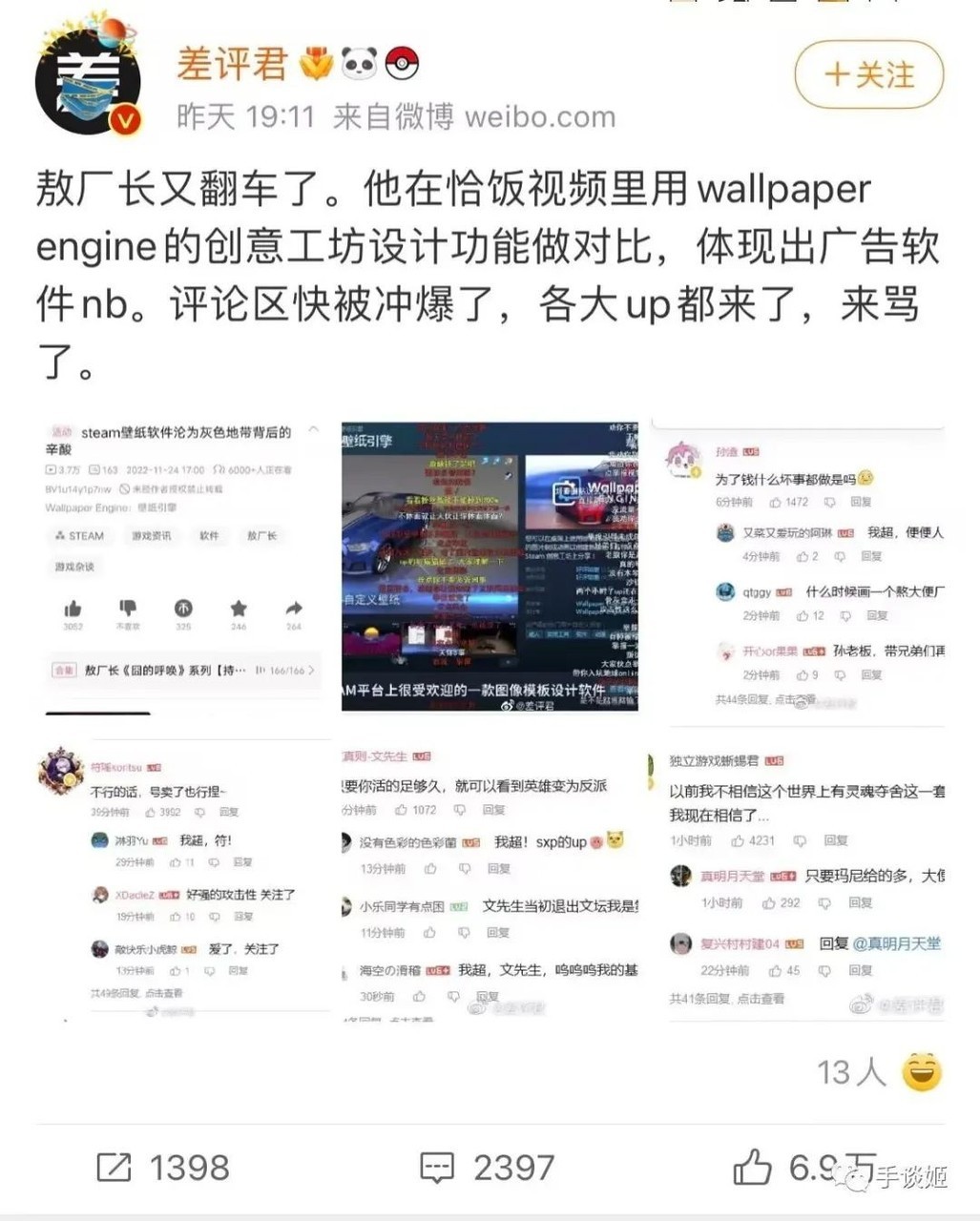姬觉得甲方应该是看了的,但不论甲方还是敖厂长都没能看出玩家对于这wallpaper engine会有这样的反应。传统的广告行业需要头脑风暴、比稿、确认伦理问题,但百密也有一疏,更别提这种kol广告的形式了。