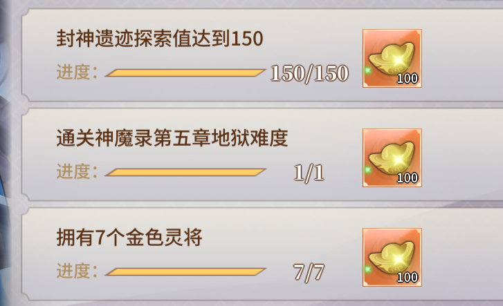 ①封神遗迹探索值达到150