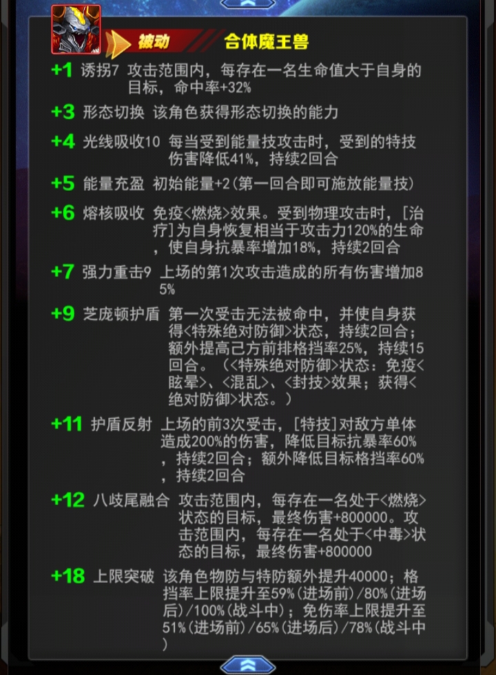 +11 护盾反射 上场的前3次受击,[特技]对敌方单体造成200%的伤害,降低目标抗暴率60%