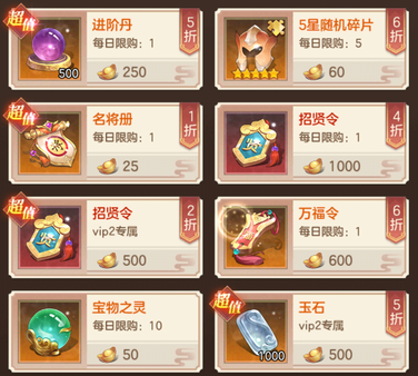 汇总:1折道具>3折道具>进阶石、玄铁>3折以上道具