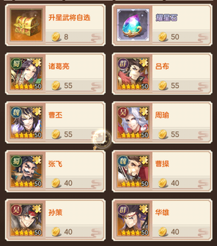 推荐购买:推荐累计55个换名将,其次就是8个换升星武将自选包