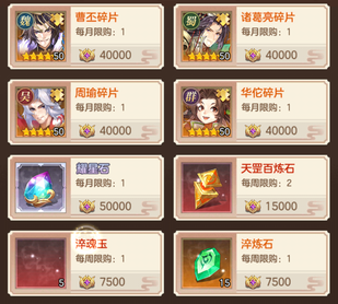 月卡党玩家推荐,优先购买每周限购的丹药、神龙精华。中后期需要很多