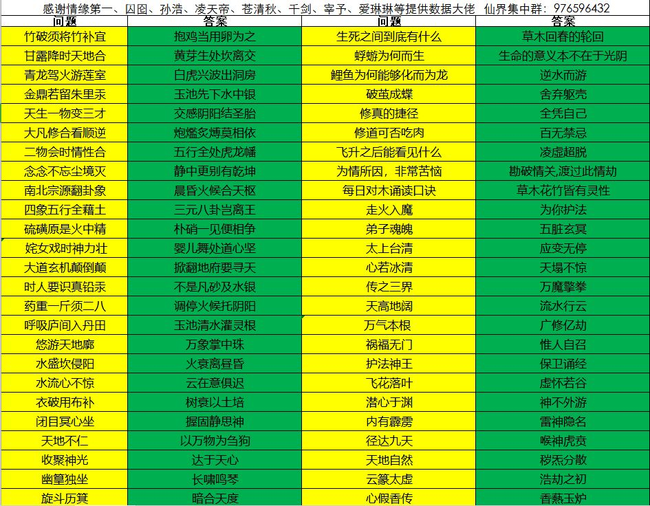闯阵飞的道友可以在飞升时答题,总共八个题目,一定要全选根骨,这样就能获得4000根骨。