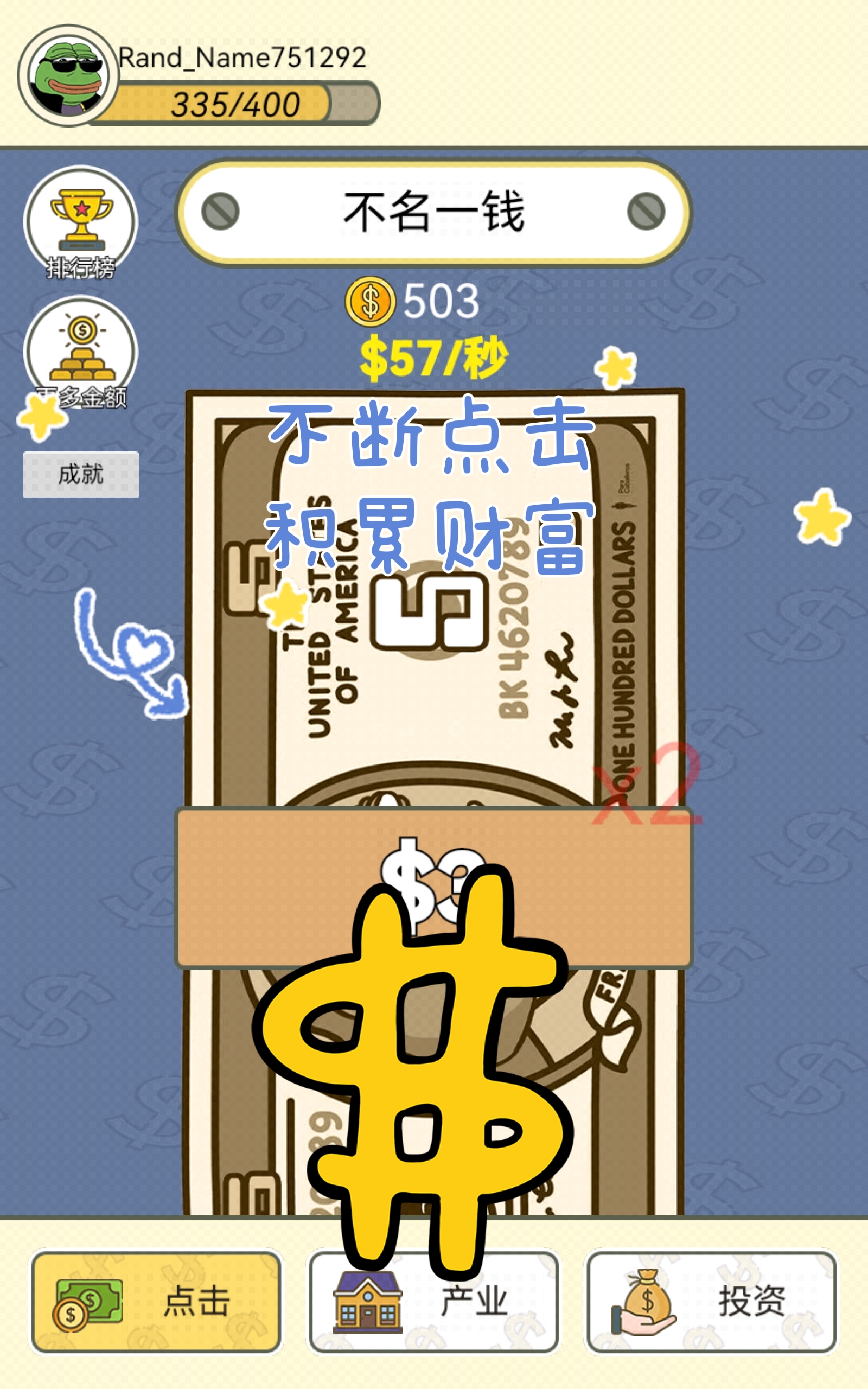 今天介绍的这款游戏将将为我们的生活增添许多乐趣😁。在这款游戏中,我们在游戏主页需要不断的点击屏幕以此来获得金币💰,增加我们的资产👍。