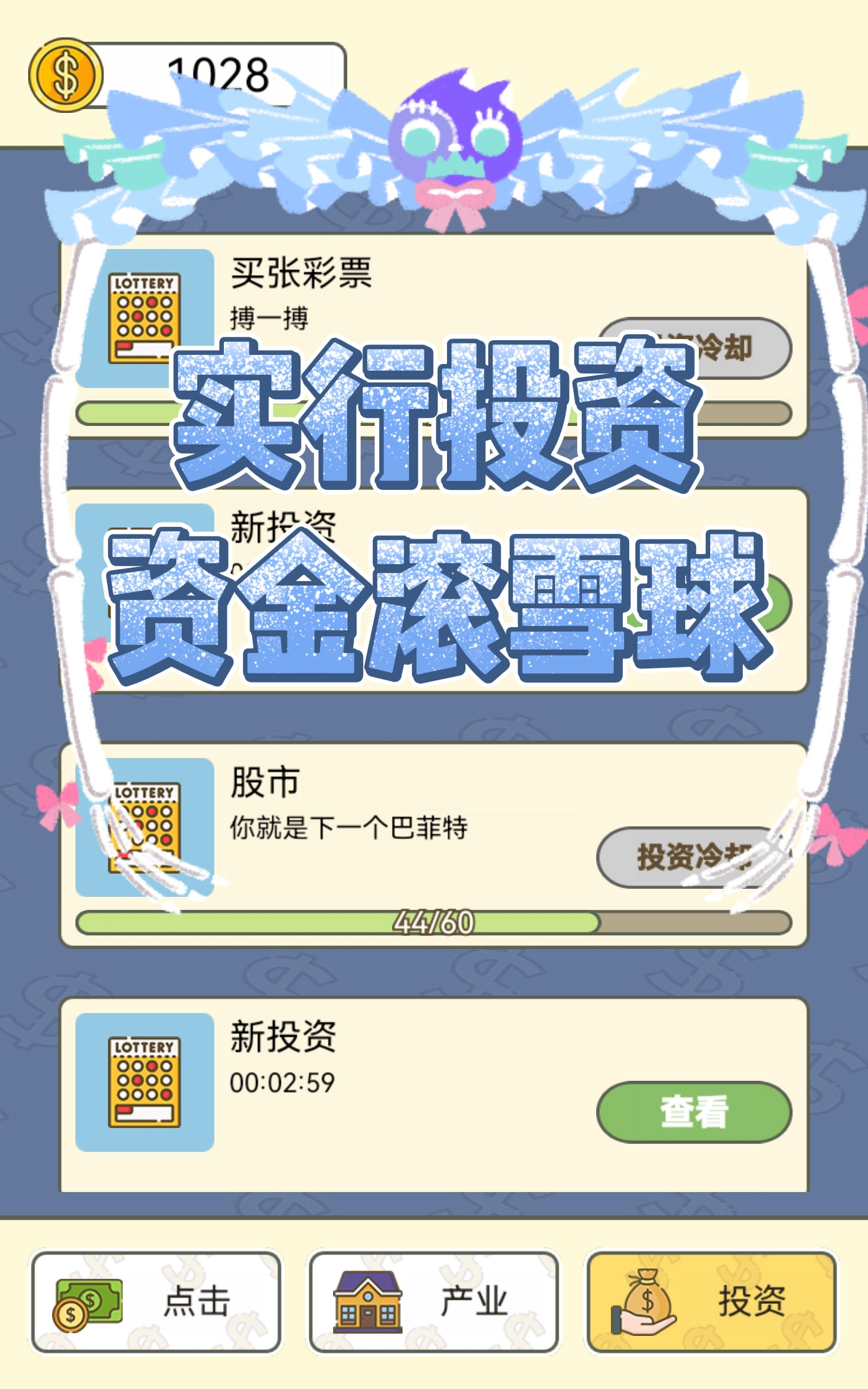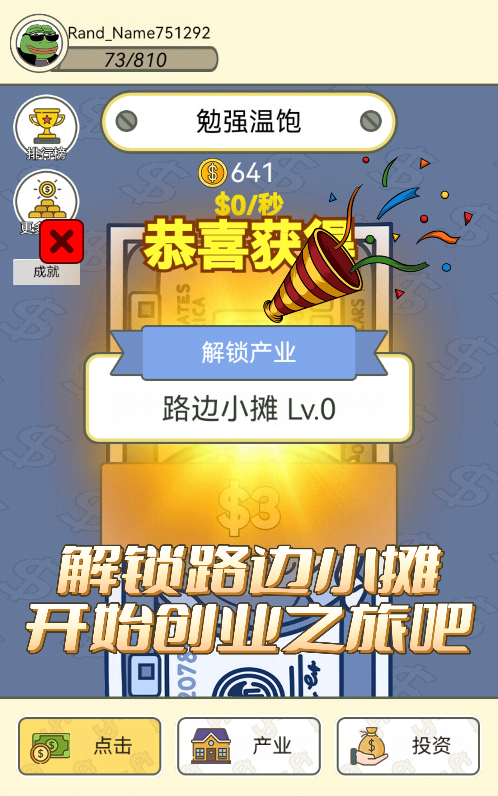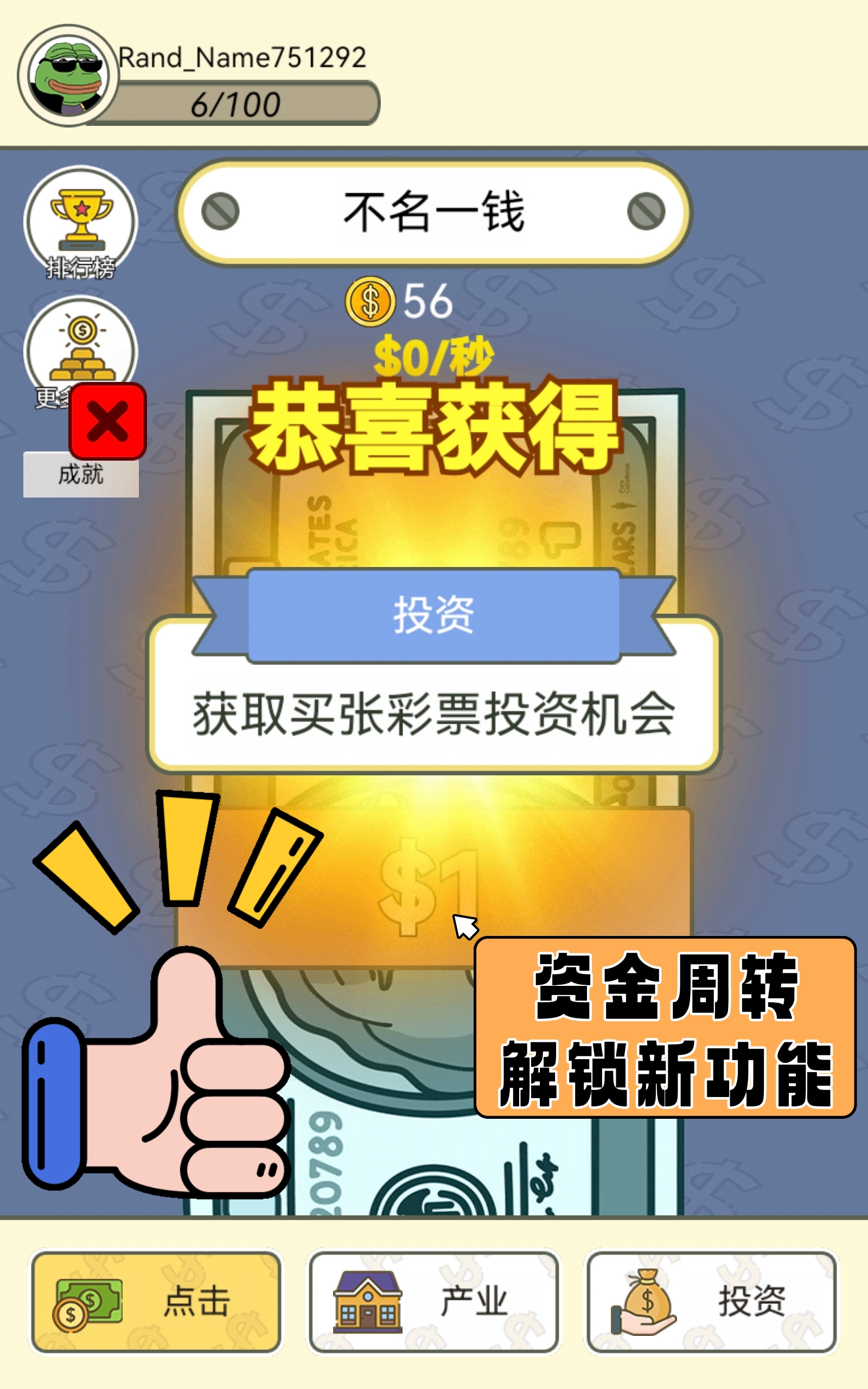例如我们可以招募一个大学生点击员💥,这样的话就会以每分钟多少次的点击速度来获取资金🌟,并且我们出的钱越多👏,获取的也越多✌。另外还可以进行投资,开拓我们的思维🧠,一旦投资成功就可获得额外收益🎂,但投资也是有风险的,因此投资需谨慎🚫。