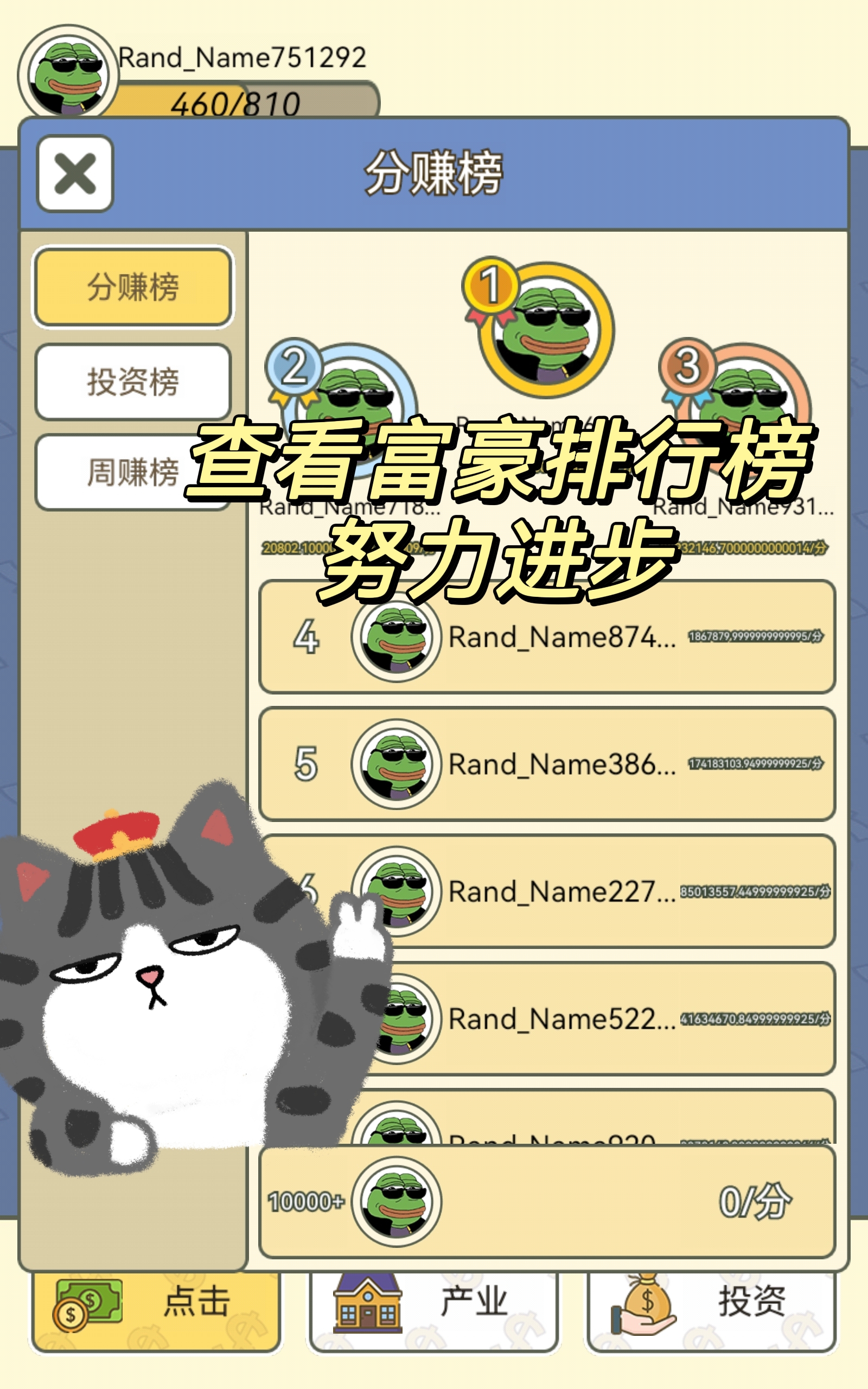 并且还会有一个富豪排行榜👑,我们可以此观察我们还要哪些是需要努力的🌈。因此作为一款休闲娱乐游戏还是非常不错的,并且画质也非常清晰。欢迎大家试一试👍。