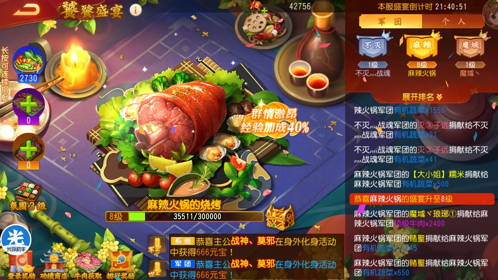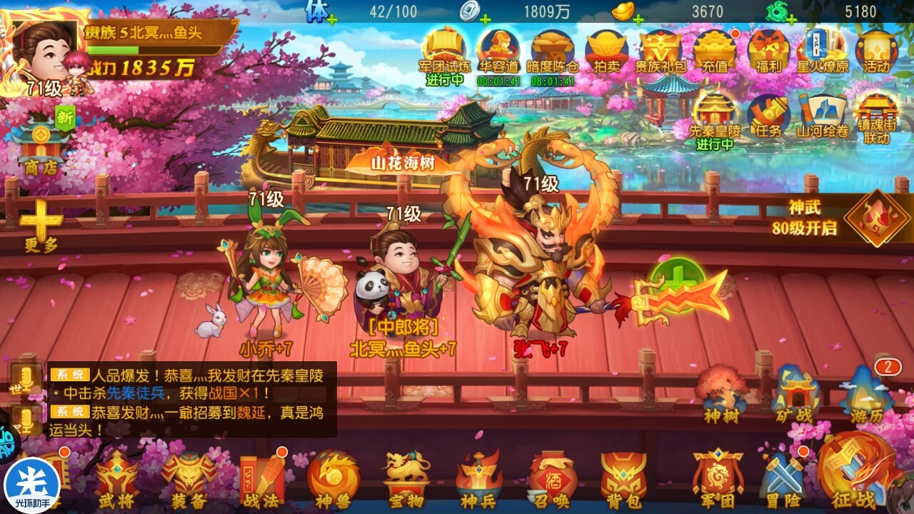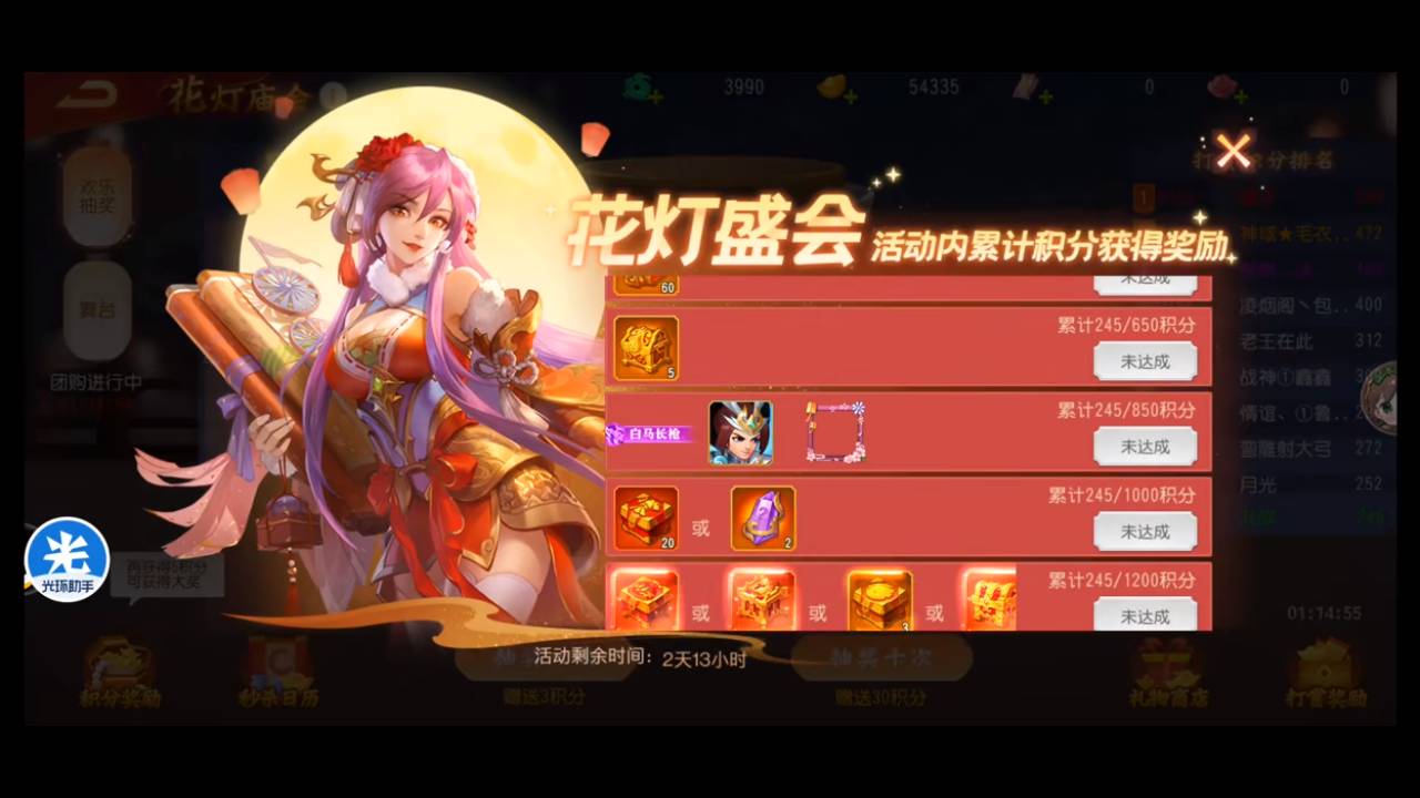 玉璧投入到花灯庙会,限量版金将活动,汉将招募活动,开战法位,开阵法。