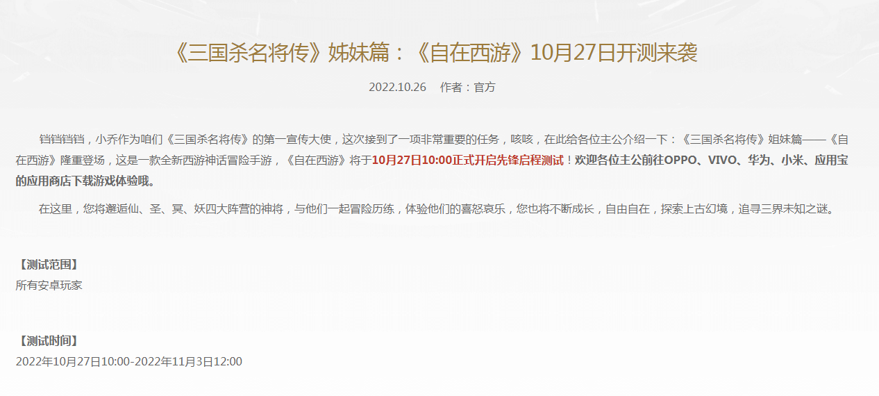 作为《三国杀名将传》老玩家,对这款新游戏还是比较关注的,因为《自在西游》号称是《三国杀名将传》的姐妹篇。