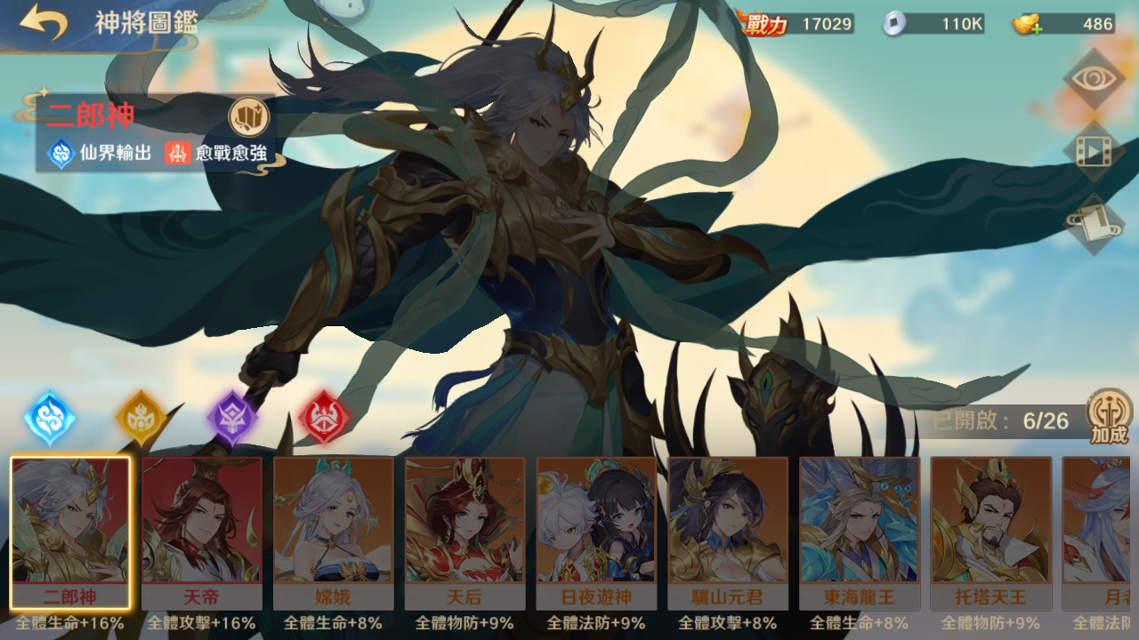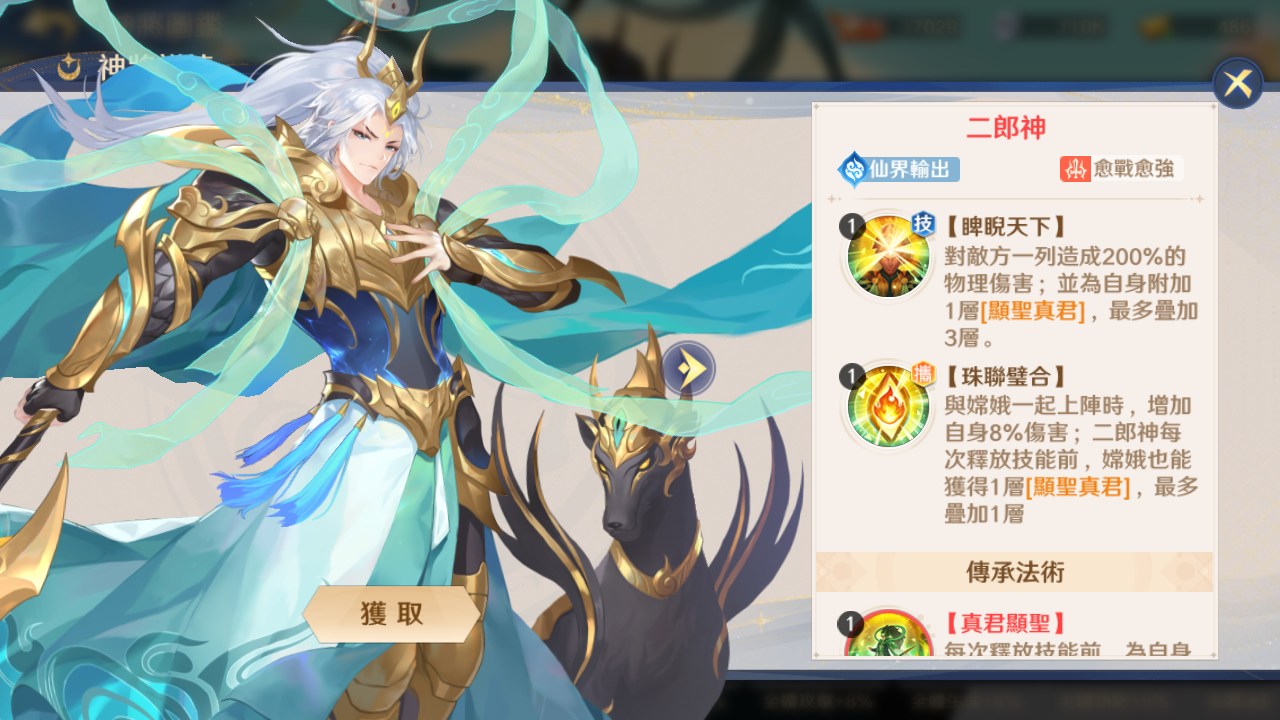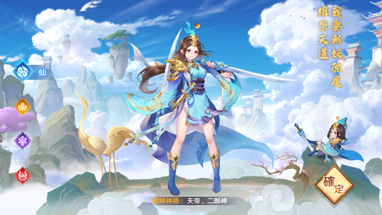 红色武将二郎神有点类似赵云,综排爆发输出,天帝类似诸葛亮,前排晕眩。