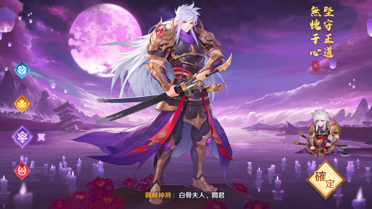 红将高爆发,减怒,中毒,控制,单看这设定,就有《名将传》中群雄阵营的设定,红色武将的技能属性上阎君高爆发,类似吕布,可白骨夫人有了新的属性,可以召唤,这与名将传中的控制左慈又有所不同。