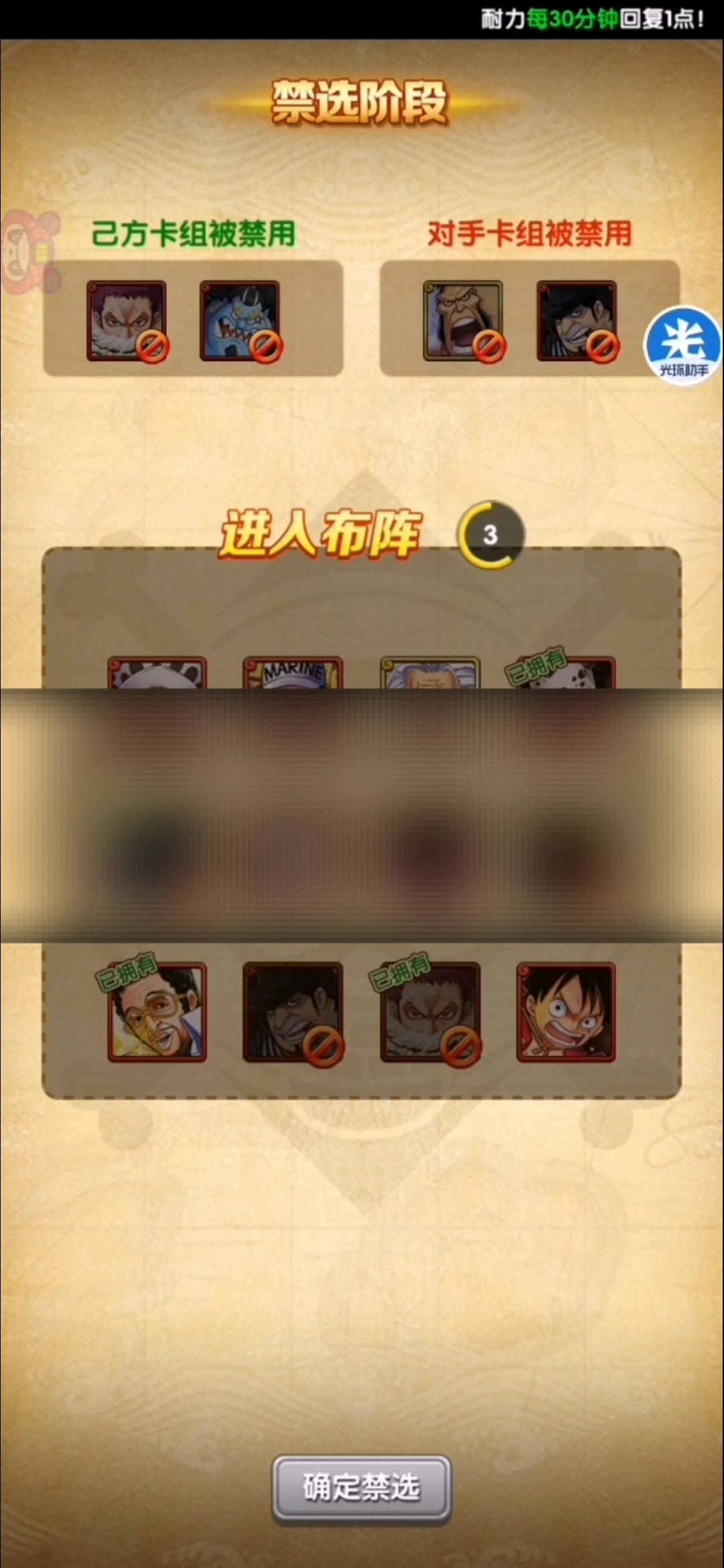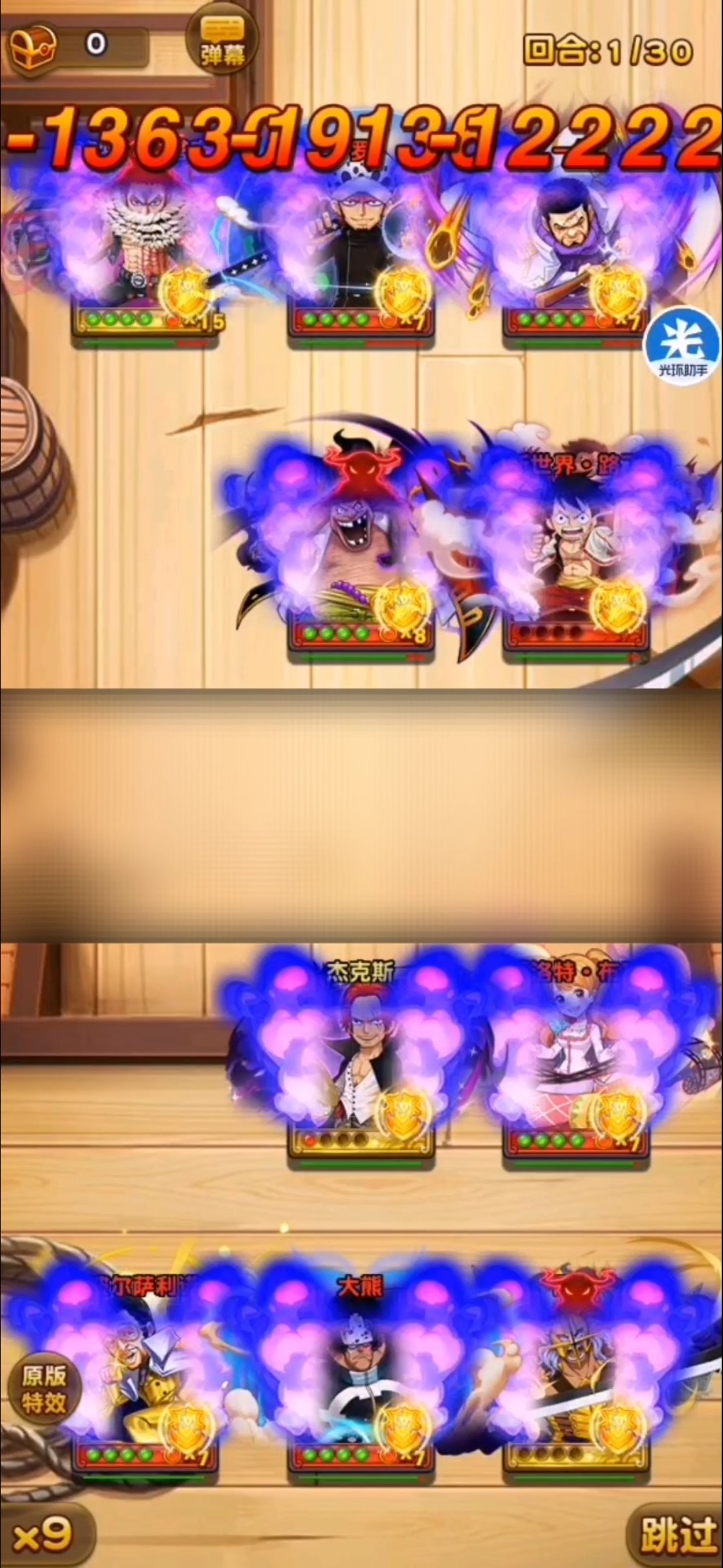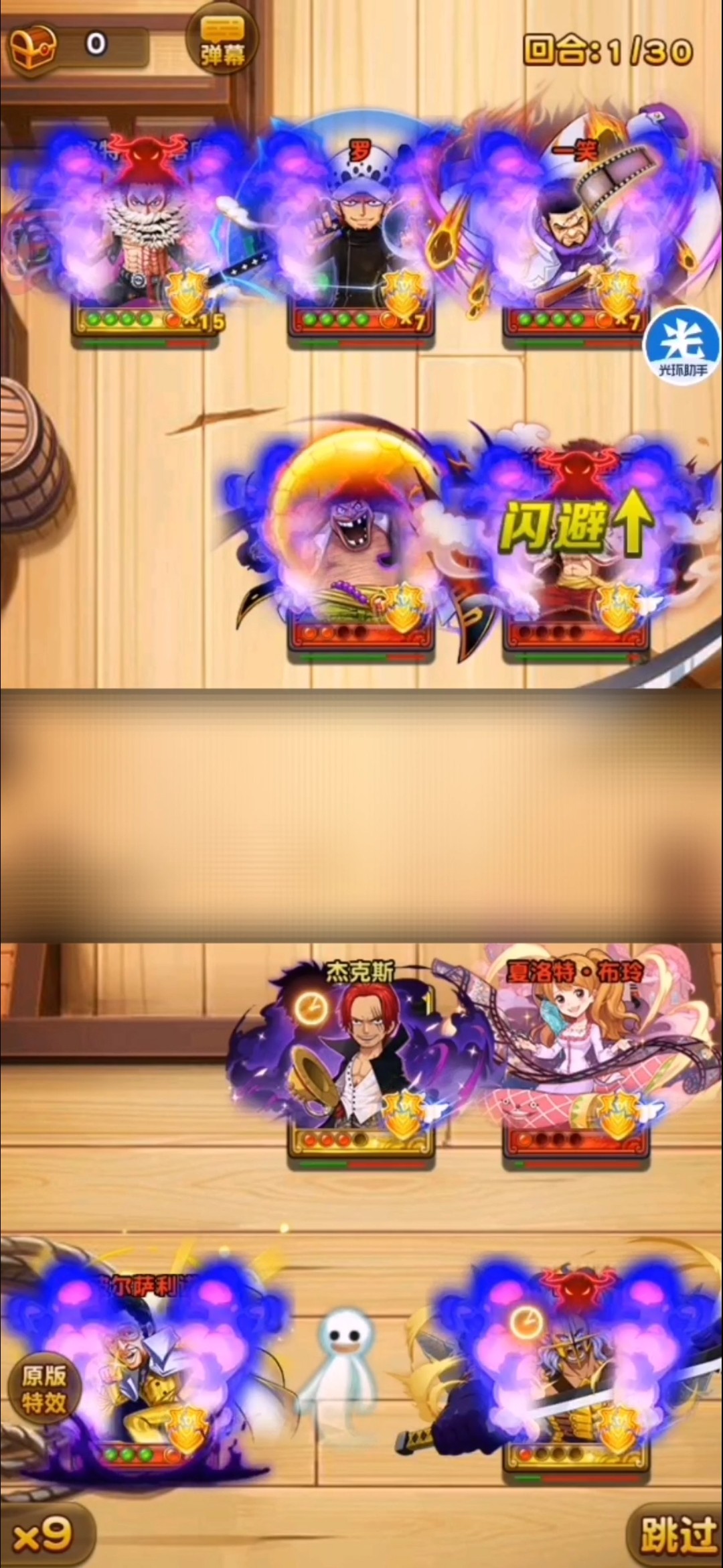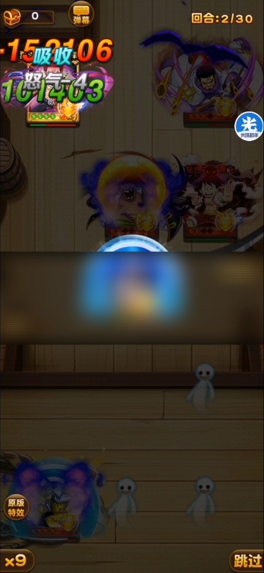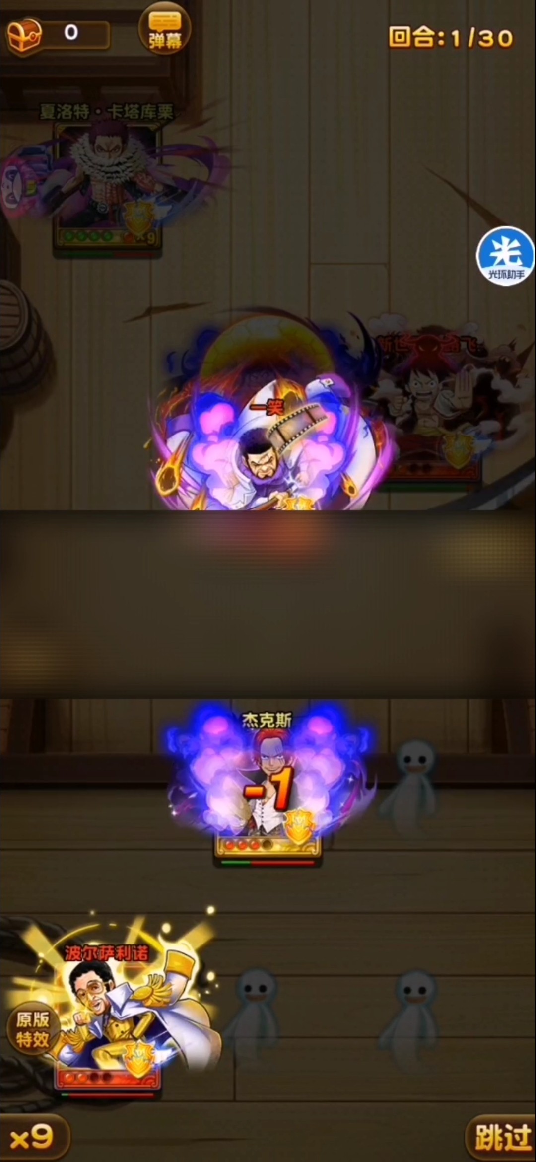 到第二回合的时候我方红发出手差点把敌方卡二带走并且附上的控制效果与减怒可惜打的不是黑胡子也没有把他控住,