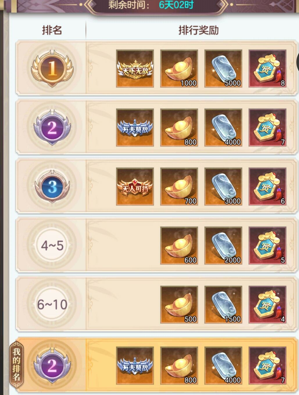 实在没有办法的话,那就赵云 黄月英 关银屏 小乔 太史慈 魏延。这套阵容几乎接近白嫖了,第一天可以这么搭配试着来。