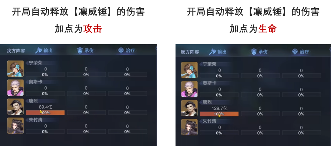 唐烈不频繁使用4技能,只用1技能或普攻,则其身上的【赐福】状态可以保留,但却会确实离场后昊天锤的全场加攻效果