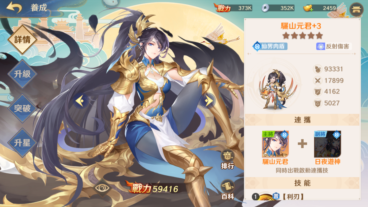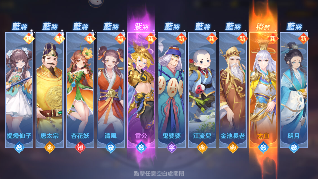 这样常规型的开局组合,随着武将的丰富慢慢淘汰没有觉醒天赋的武将,留下核心型的武将重点培养,比如日夜游神、骊山元君、东海龙王等。