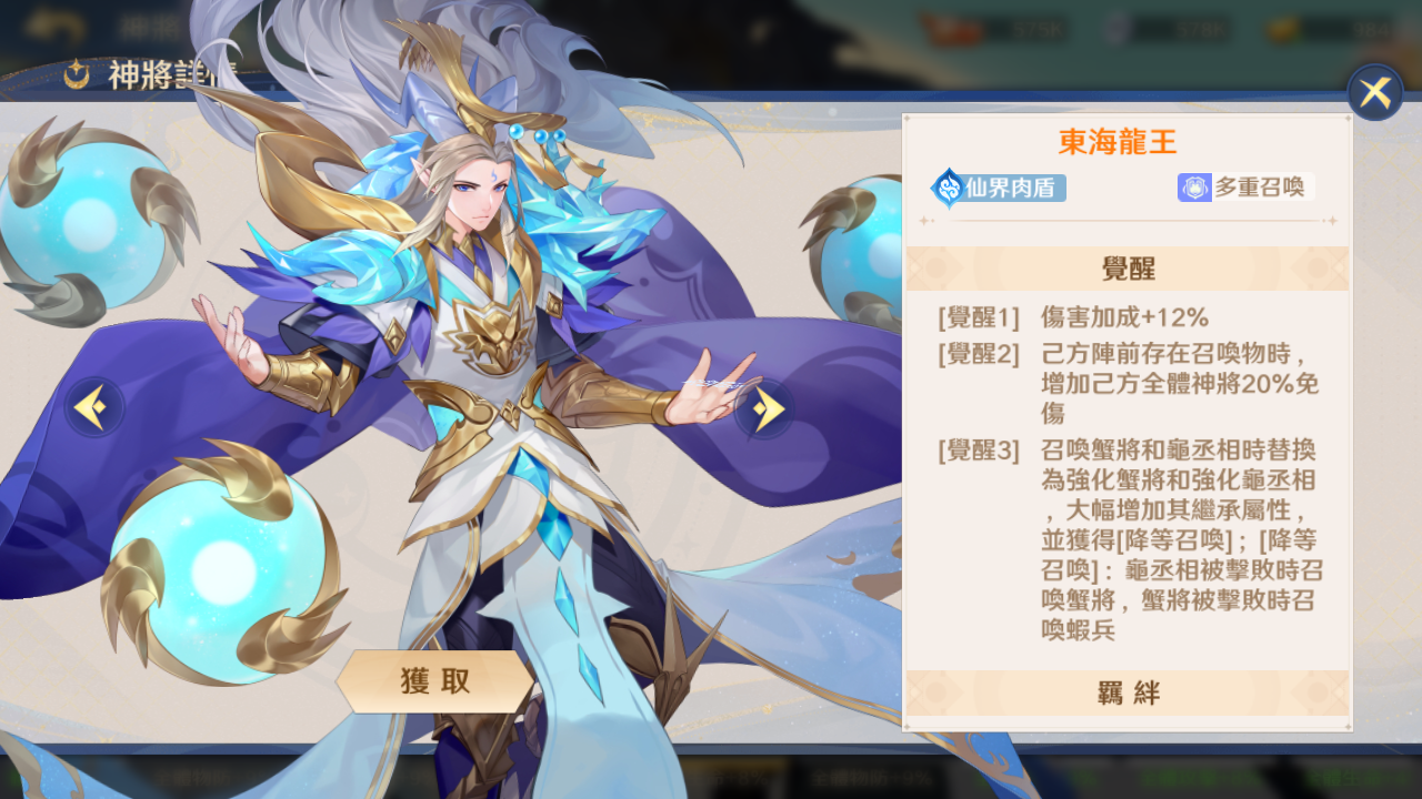 核心觉醒武将——东海龙王+托塔天王☆☆☆