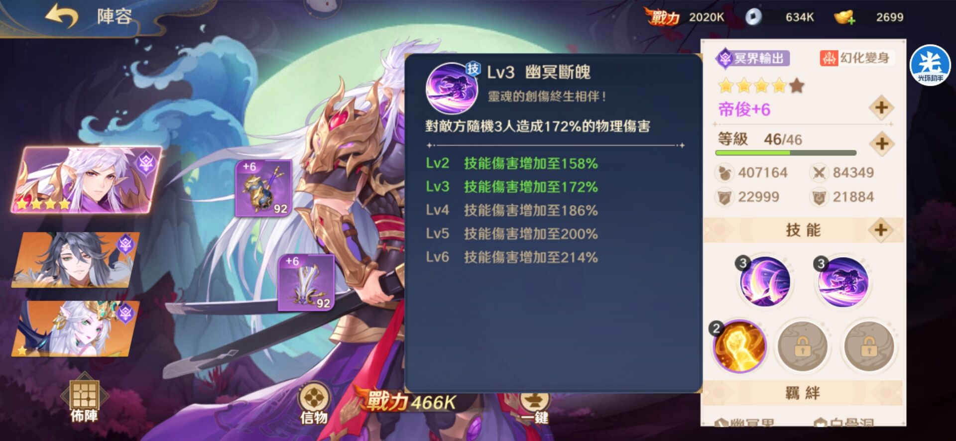 我们的冥界主角,本身的强度是非常之高的。后面随着等阶的升级,伤害上的跨度也会有显著的提升。后期更是能用神通卡变化成其他角色,前期可以用来当成一个不错的主c。