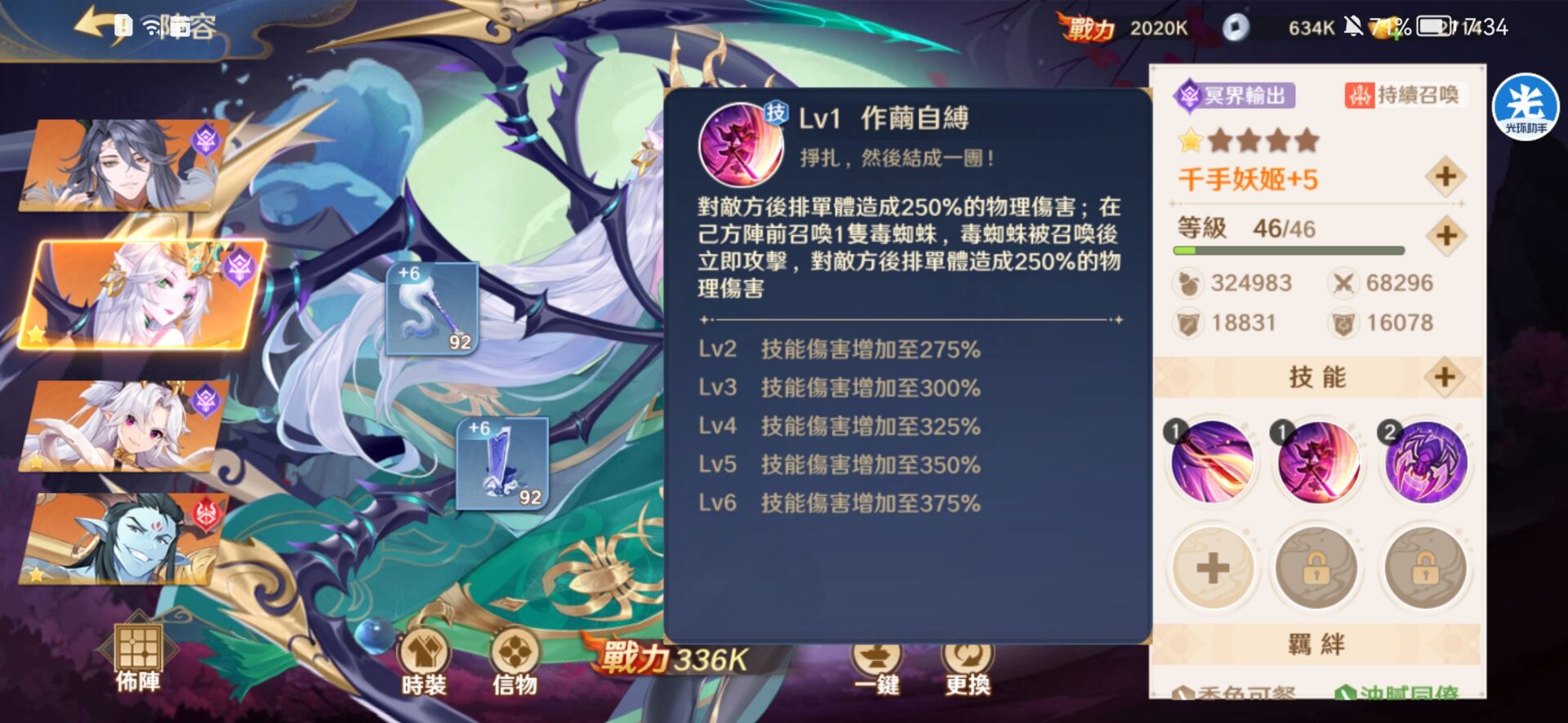 千手妖姬,单切之神。可以对敌方单体进行高额攻击,并且召唤蜘蛛精补刀。而且最强的是这只小小的蜘蛛精,还可以吃掉对方高伤害英雄的前排大招。可谓是居家必备,哪怕在后期也是令人闻风丧胆。