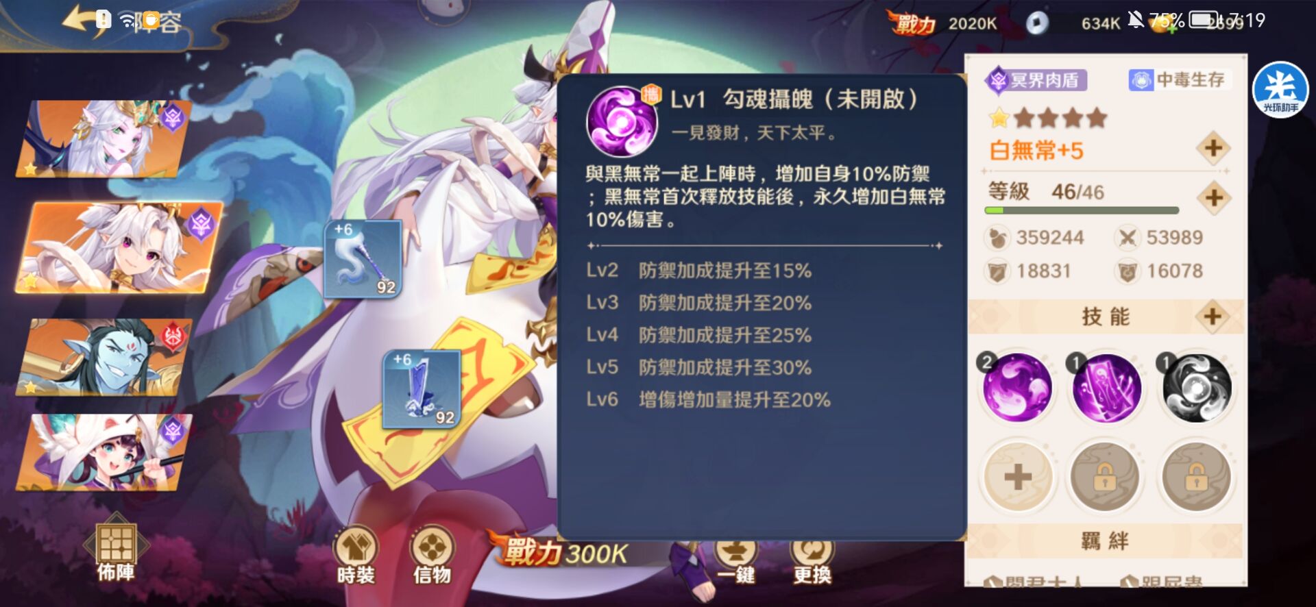 上阵:黑无常、白无常、百眼魔君、千手妖姬、白小鼠、冥界主角。