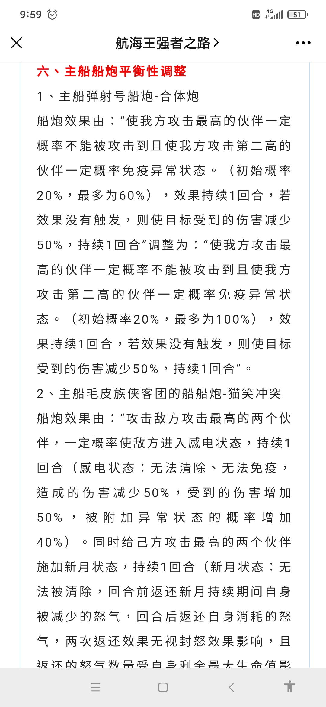 猫笑冲突船炮把之前新月buff下增加的怒攻增伤改成了怒攻最终增伤,把叠加上限从50%下降到40%,看着像是削弱,但是充值活动刚开,本月的金船活动刚开始卖,所以看着像是削弱的船炮,具体实战效果还是得更新以后才知道.