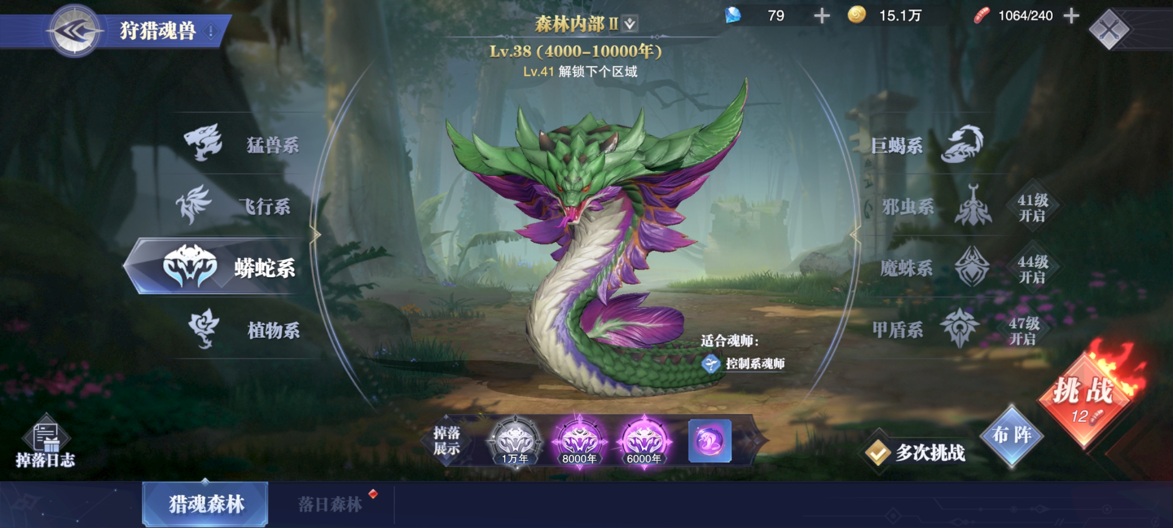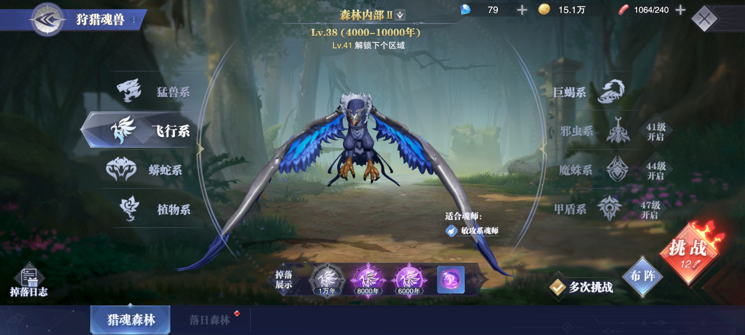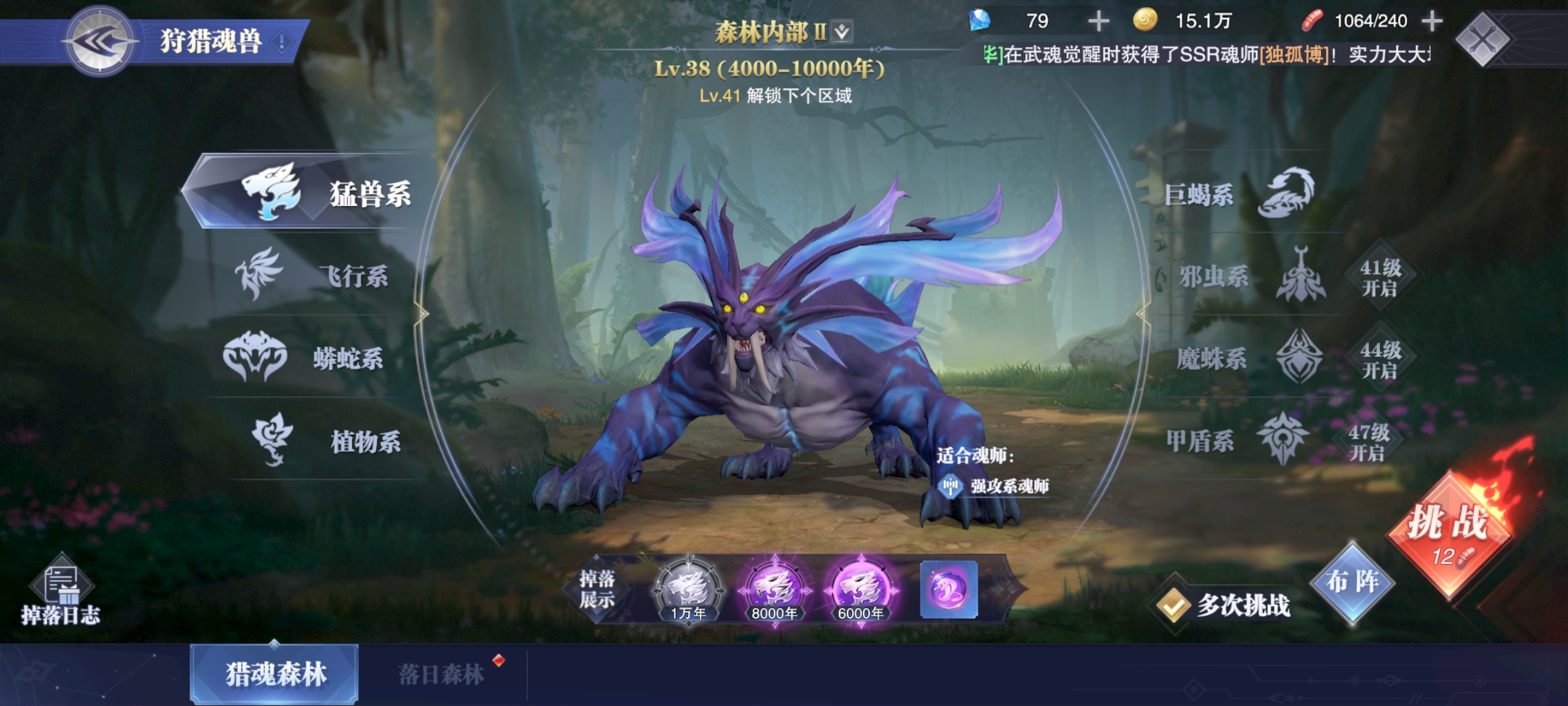 魂兽的年限,会通过你的等级来解锁,左边的魂兽,比如说猛兽系,飞行系这四种,你开局就可以获得,右边的巨蟹系,甲盾系,这些需要通过等级来解锁的哦!