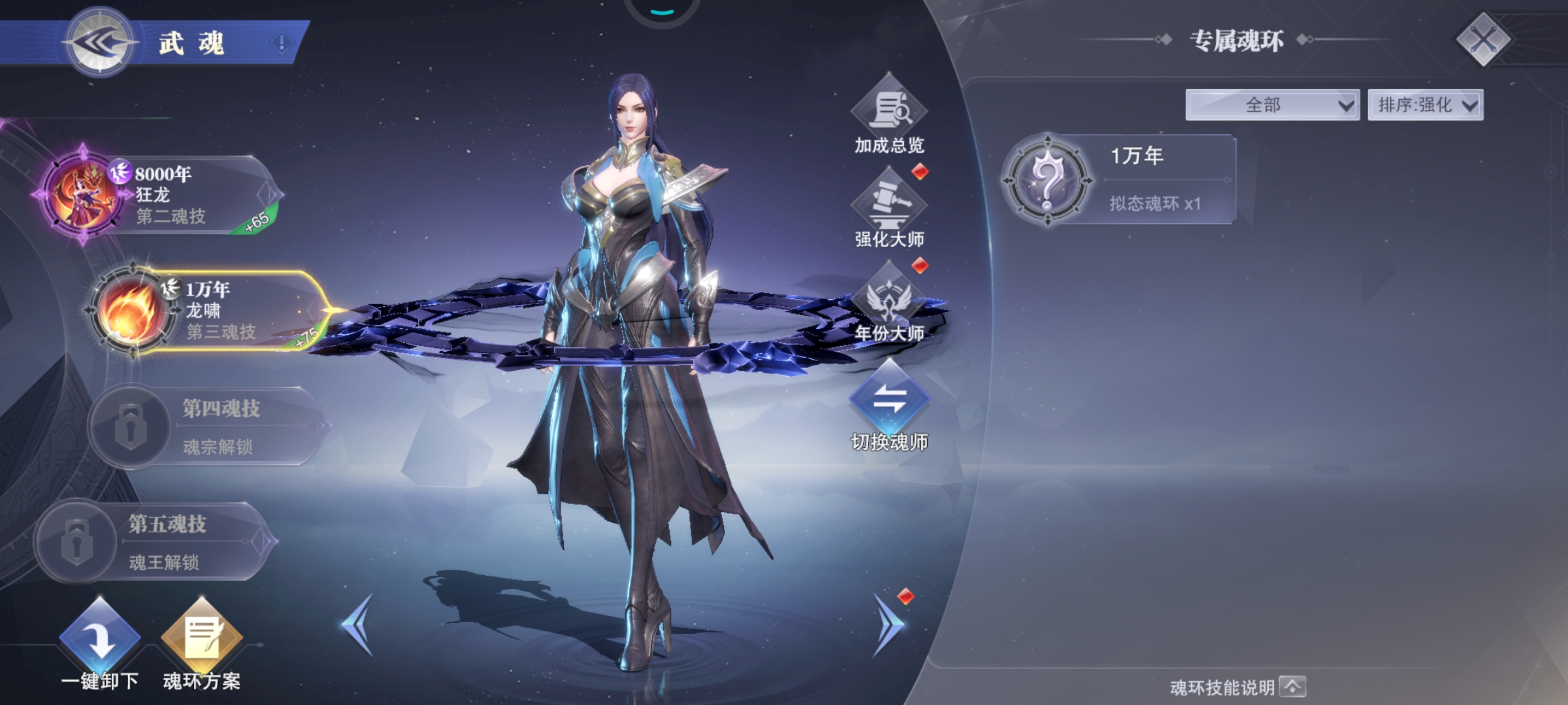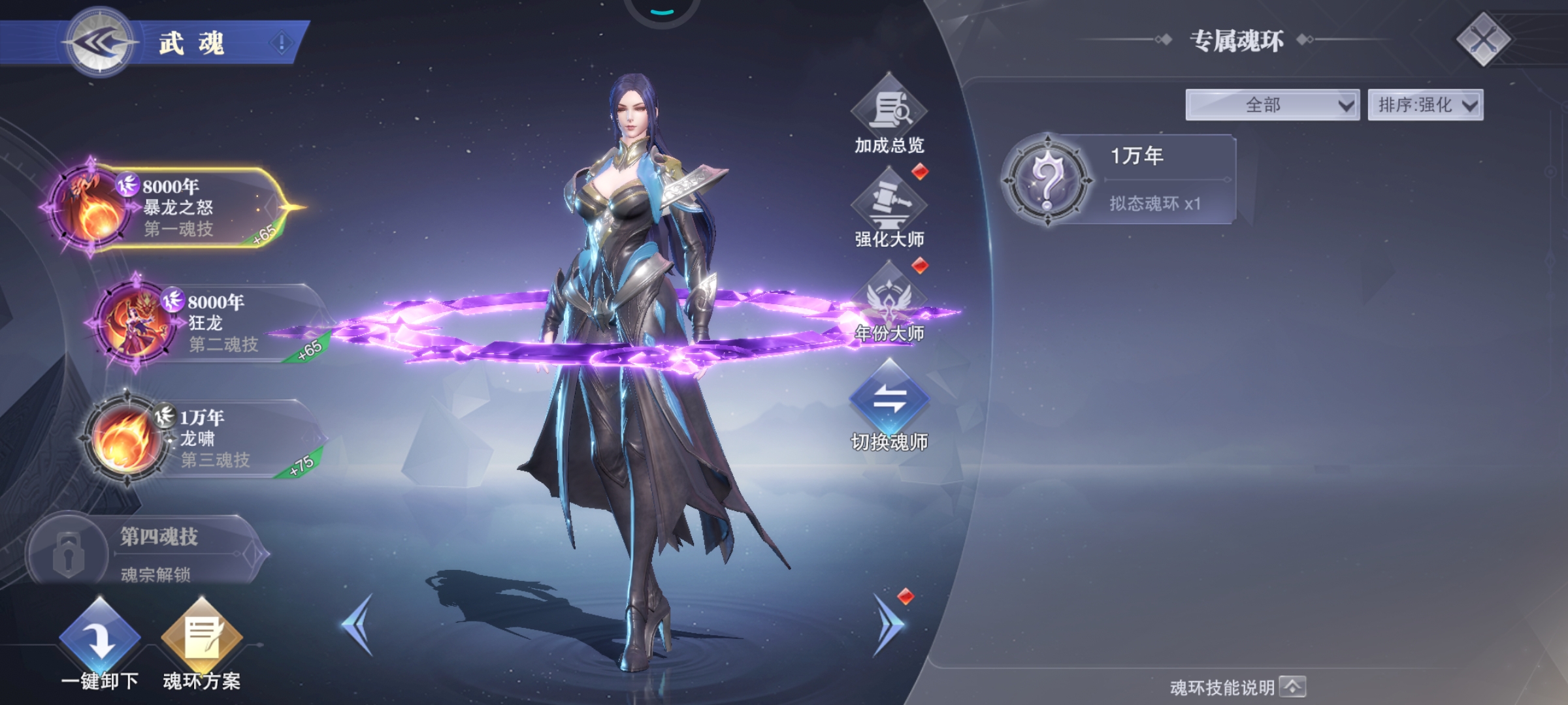 万年魂环为黑色,是最好的魂环,能让魂环全是黑色,就最好全是黑色的,这样会大大提升你的队伍!