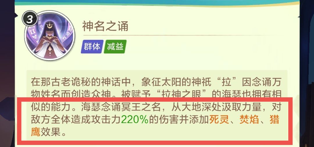 ✨释放怒气技能之后能够复活我方一个单位,这里有一个重点要讲的就是她所回复的生命值不关系自己的输出,在以往的牧师回复方式都是以自身攻击力百分比进行恢复,而新暗奶则是以自身最大生命值来决定恢复,这样的收益更大,我们可以完全把她往坦度方向培养。[也不会因为往坦度方向培养过多影响她的输出,是一个具有消耗能力和强大恢复的英雄]
