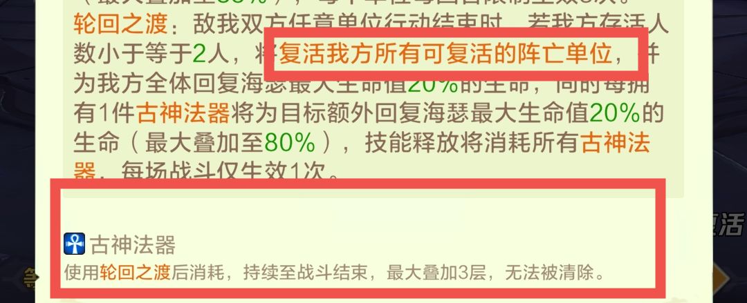 ✨限制复活相当于不稳定触发的禁魂[最高达34%]针对拥有复活能力的英雄[克制双子、圣女、九尾等,同时九尾复活失败也会消耗尾巴,原因是九尾先消耗尾巴进行复活,但施法失败]技能容易使对方处于掉点的劣势,。