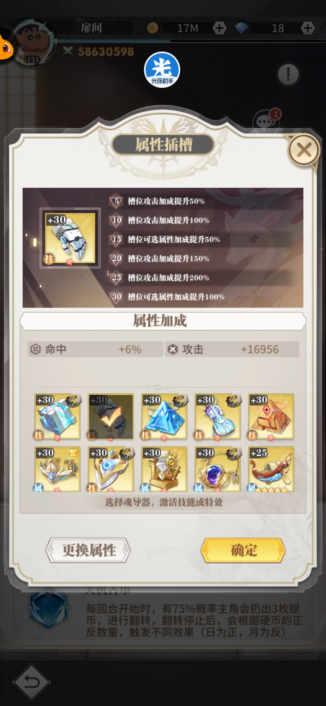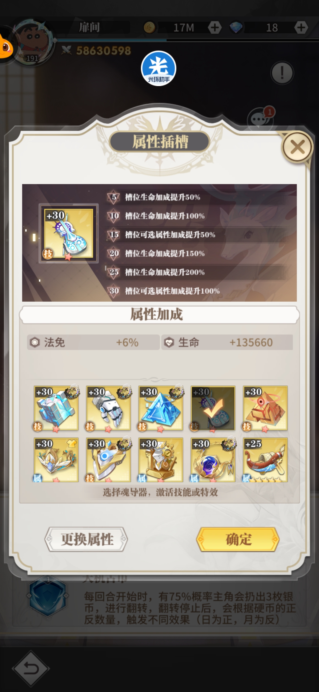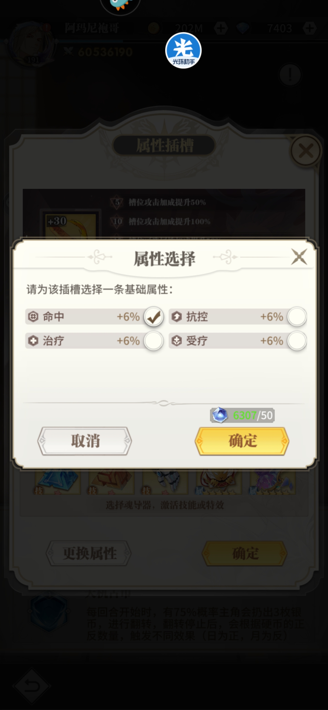 一孔属性孔,增加放入的魂导器属性,就是增加战力,大概在40万左右,还有个自选基础属性,6%命中、抗控、治疗、受疗四选一,建议选命中或者受疗。6%命中基本上算是废了强势的闪避流,后面会出一期专门介绍闪避流免伤流的攻略。