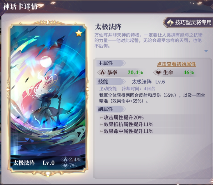 太极法阵:洪荒异世玩法当中表现强势,但是pvp玩法效果一般。在洪荒异世玩法中可以排到T0。