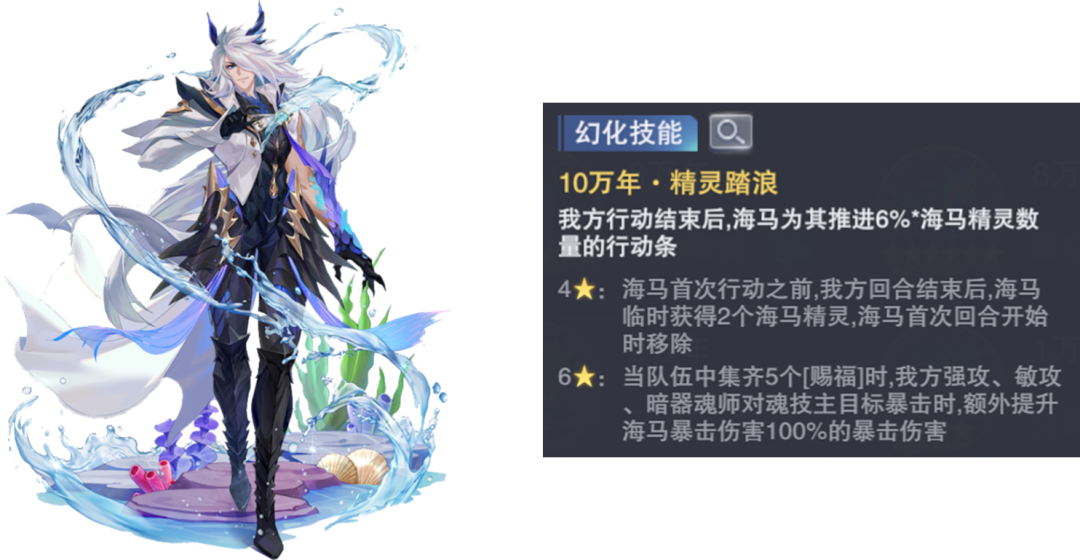 今天最后一个盘点大神则是新晋神辅海马斗罗,凭借着一手超强主/被动护盾,颇有奇效的救命复活小海马,海马斗罗的综合辅助能力也是杠杠的,特别在面对如SP千仞雪等速攻流队伍时有不错的针对作用,此外部分需要高频率的战斗中,海马的4技能还可以调换为【赐福】,这也一定程度上可以替代白沉香的1-2拉条效果,在损失抢一速便利的前提下获得了更多的防御能力,这个也是目前不少玩家选择海马的最大原因所在,总而言之海马斗罗目前也是PVP战斗中上场率极高的一名辅助,综合强度也能笑傲防辅系魂师。