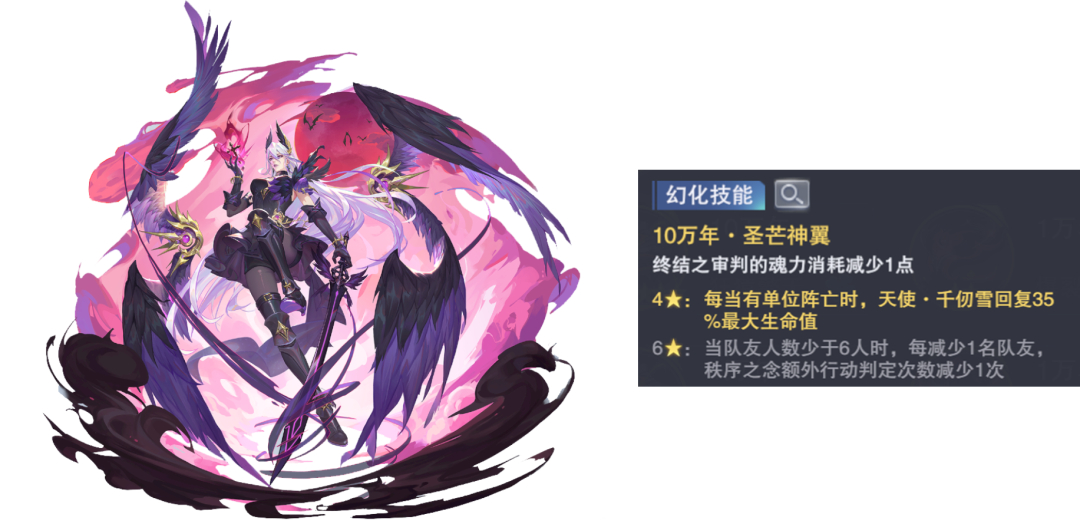 输出位上的第二位人选则是没有任何悬念的SP千仞雪,只要她的技能机制不改,【残损】的越级杀敌效果就会一直存在,除非对面带有海马,在面对其余阵容时基本上都可以靠着这个效果一马平川的快速拿下,因此靠着这种超高的进攻效率,SP千仞雪引领的队伍目前依然是绝大部分玩家在进攻队伍上的首选,此外特别要强调的是,SP千仞雪的本源魂环技能对于她的PVP强度也有着至关重要的影响,喜欢用她玩PK的朋友切勿忽视了,其中35万年、45万年和50万年的技能都可能成为逆转乾坤的钥匙。