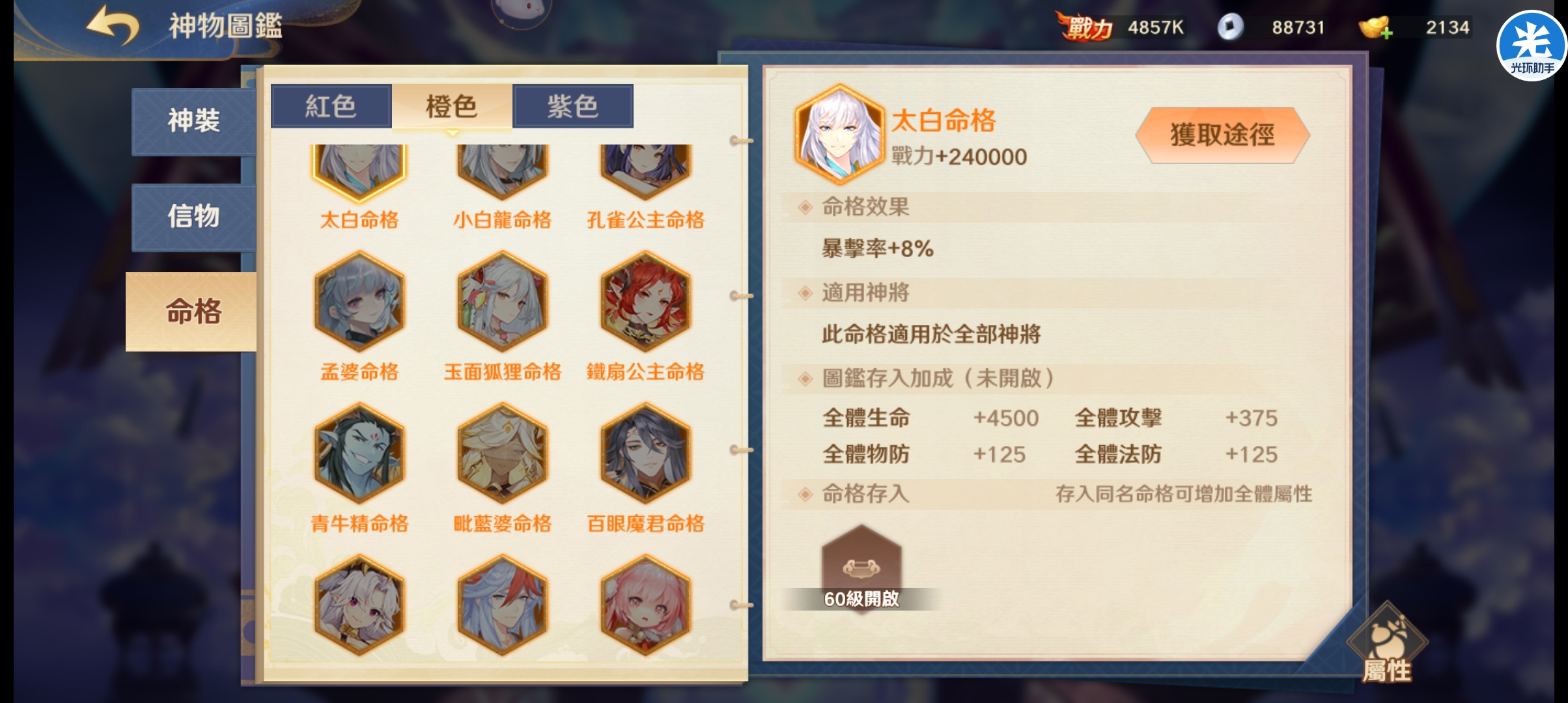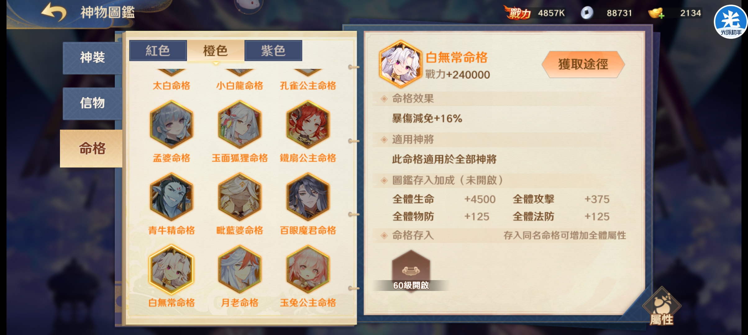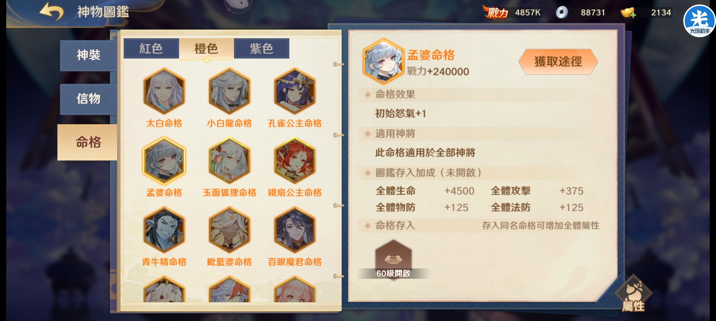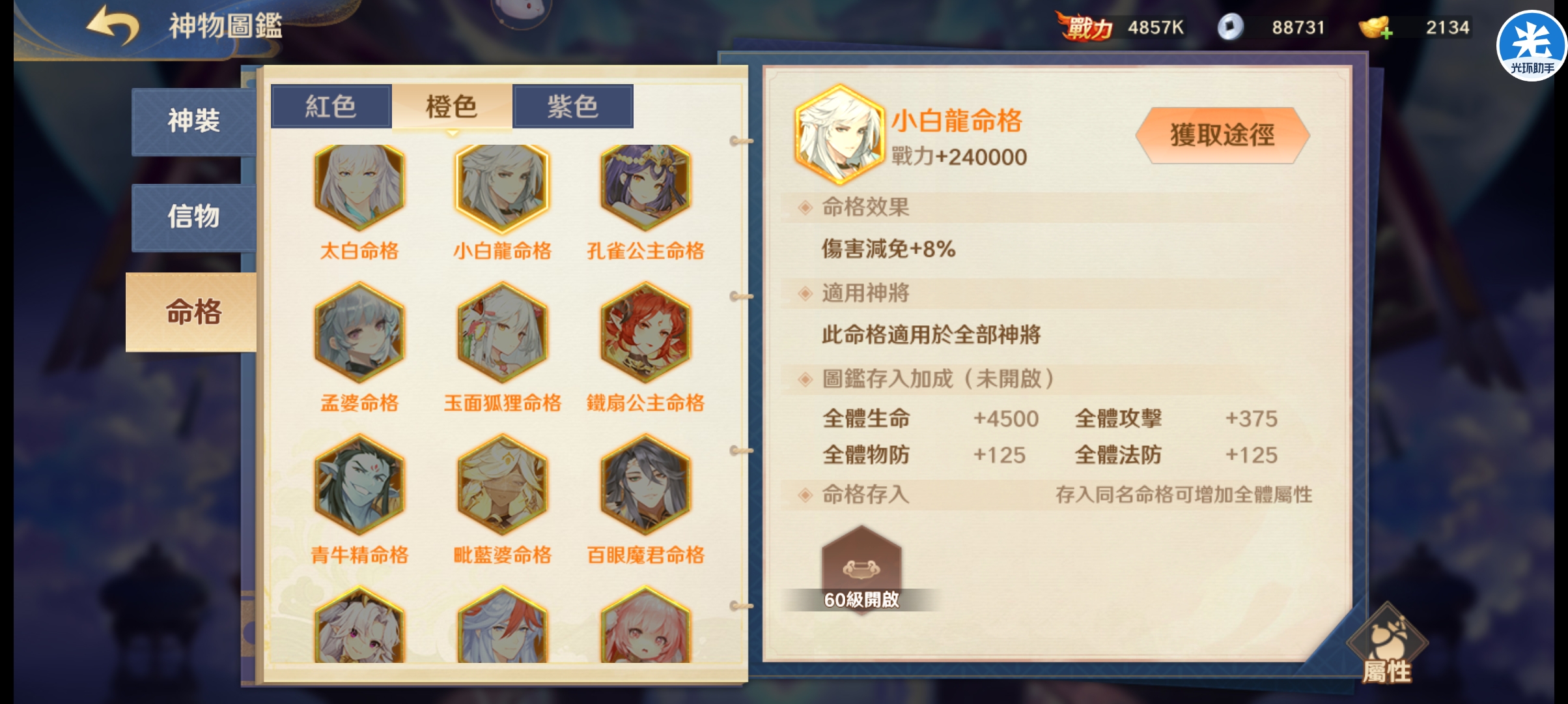 这个命格算得上是橙色命格里最良心的一个了,特别是给我们的那些肉盾,用上那这个肉度就瞬间提起来了。