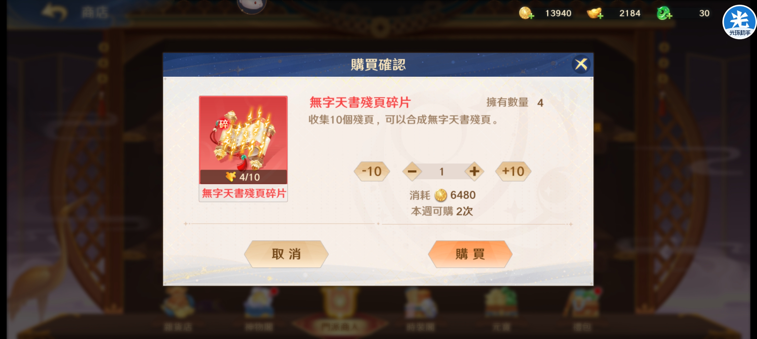 ͏然后就是我们商店的天书获取,一周两片,十片可以合成天书,一本天书可以直接升一颗星。