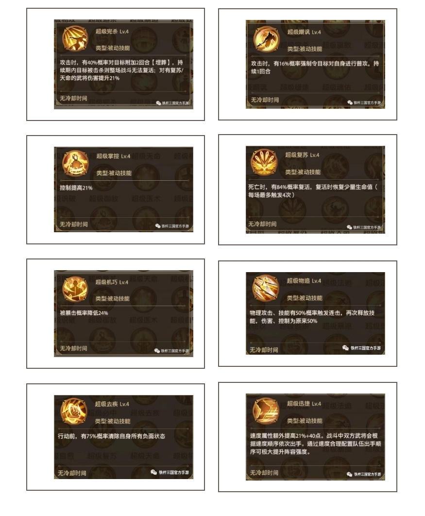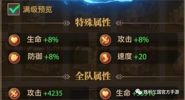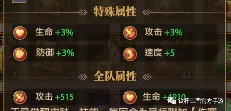 专属属性:生命+3%、攻击+3%、防御+3%、速度+5