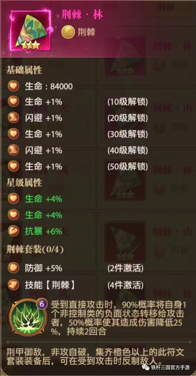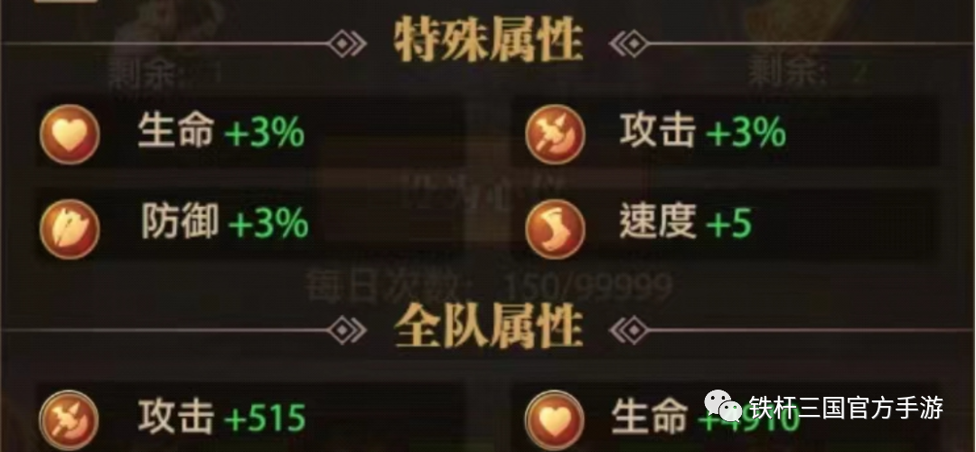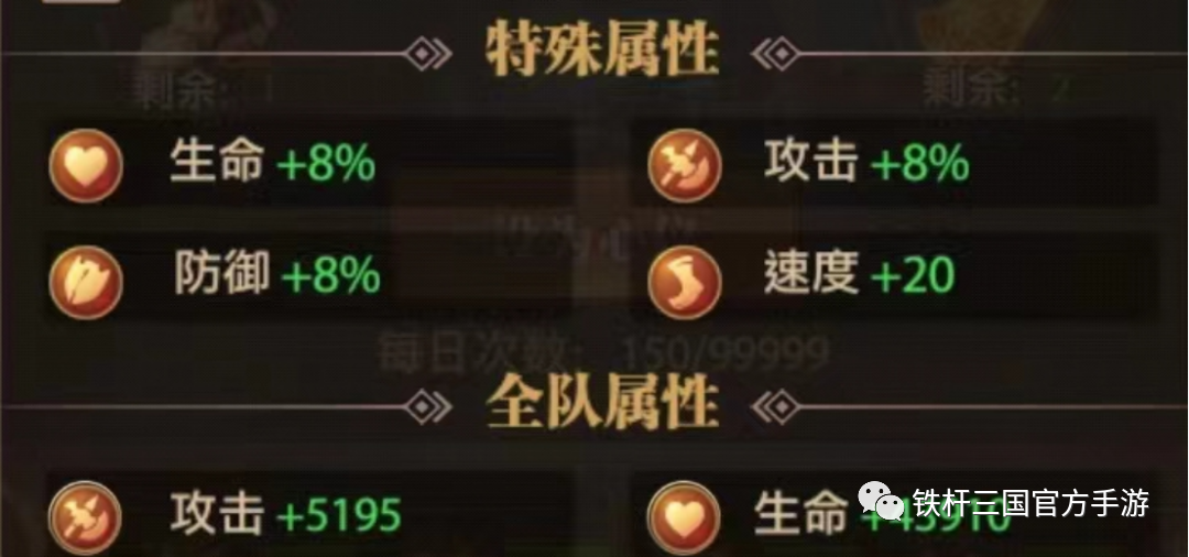 专属属性:生命+3%、攻击+3%、防御+3%、速度+5