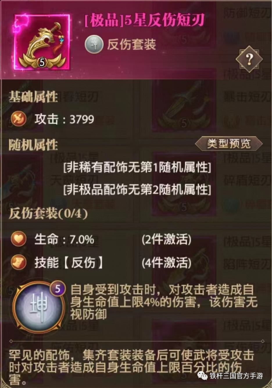 周泰推荐搭配反伤配饰套装,在装备5星反伤配饰时,会使攻击周泰的武将受到周泰生命值上限4%无视防御的伤害。