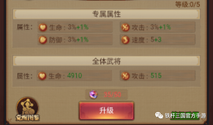 在武将觉醒界面消耗觉醒丹进行皮肤升级,觉醒皮肤满级是5级,每升一级消耗50个武将觉醒丹。