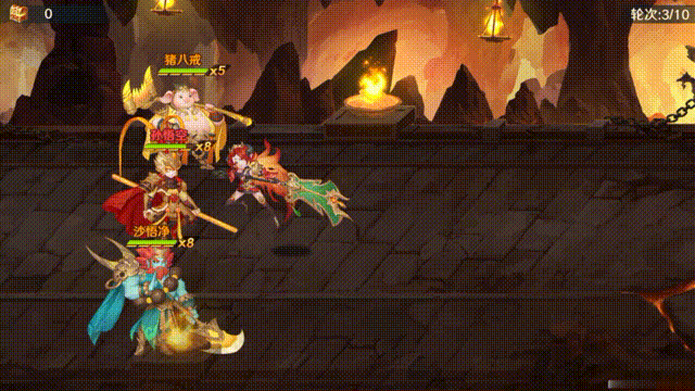 所以除华丽的演出之外,《自在西游》的玩法上也获得了堪称“卡牌游戏重制版”的史诗级改良,其中不得不提的就有这段剧情里掺战斗的闯关玩法。