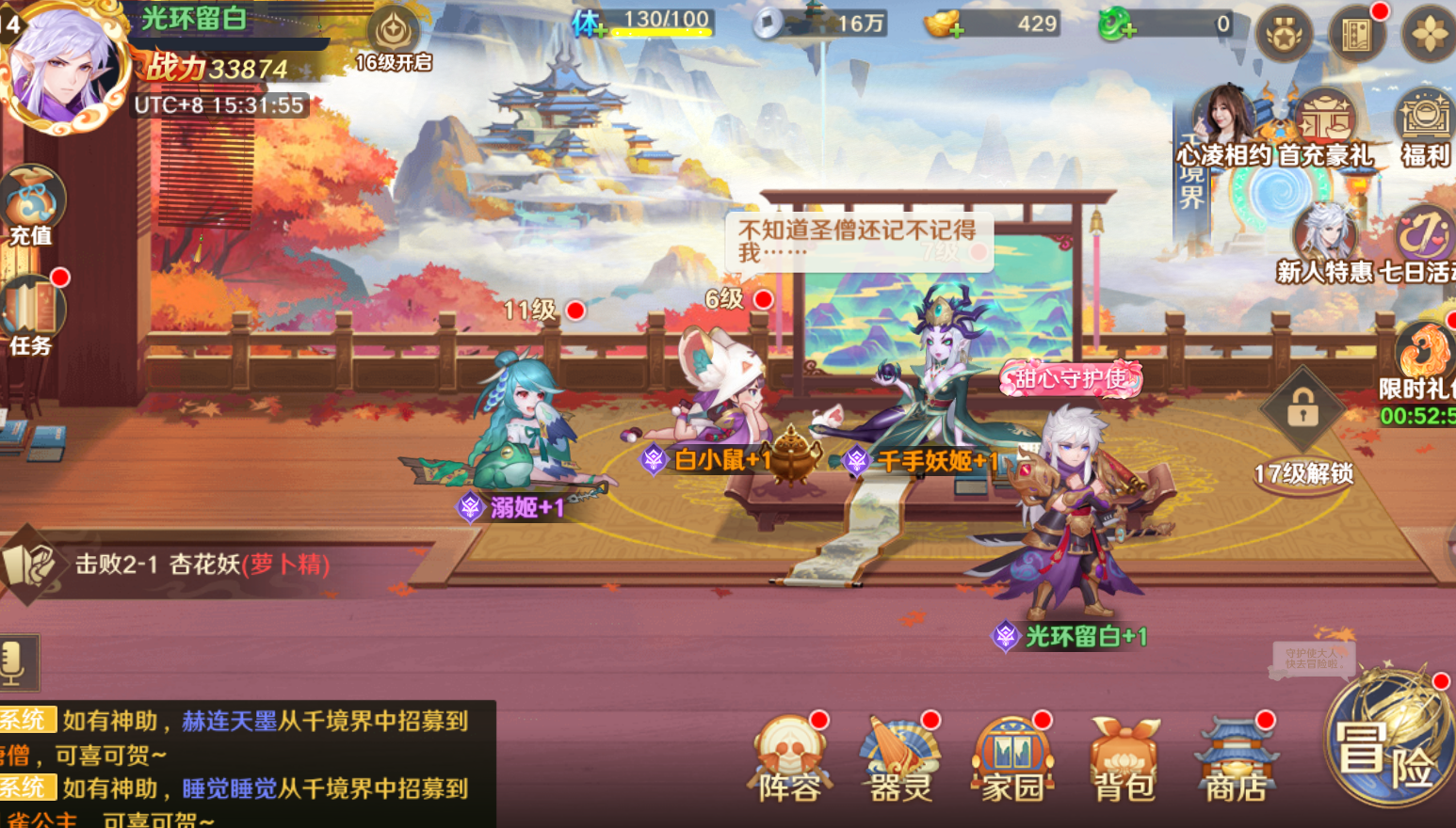 当然了,这款游戏内容大部分也是保留了卡牌玩家们熟悉的升级、进阶、装备内容,礼包/抽卡也能在主界面一并展示,还是比较方便的。