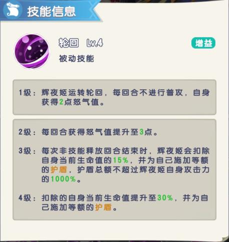 每回合回复3点怒气已经基本可以保证每2回合必放一个大招,提供月读技能释放频率。扣除生命转化为护盾,同样配合月读的链接伤害效果,提高黑式神输出。