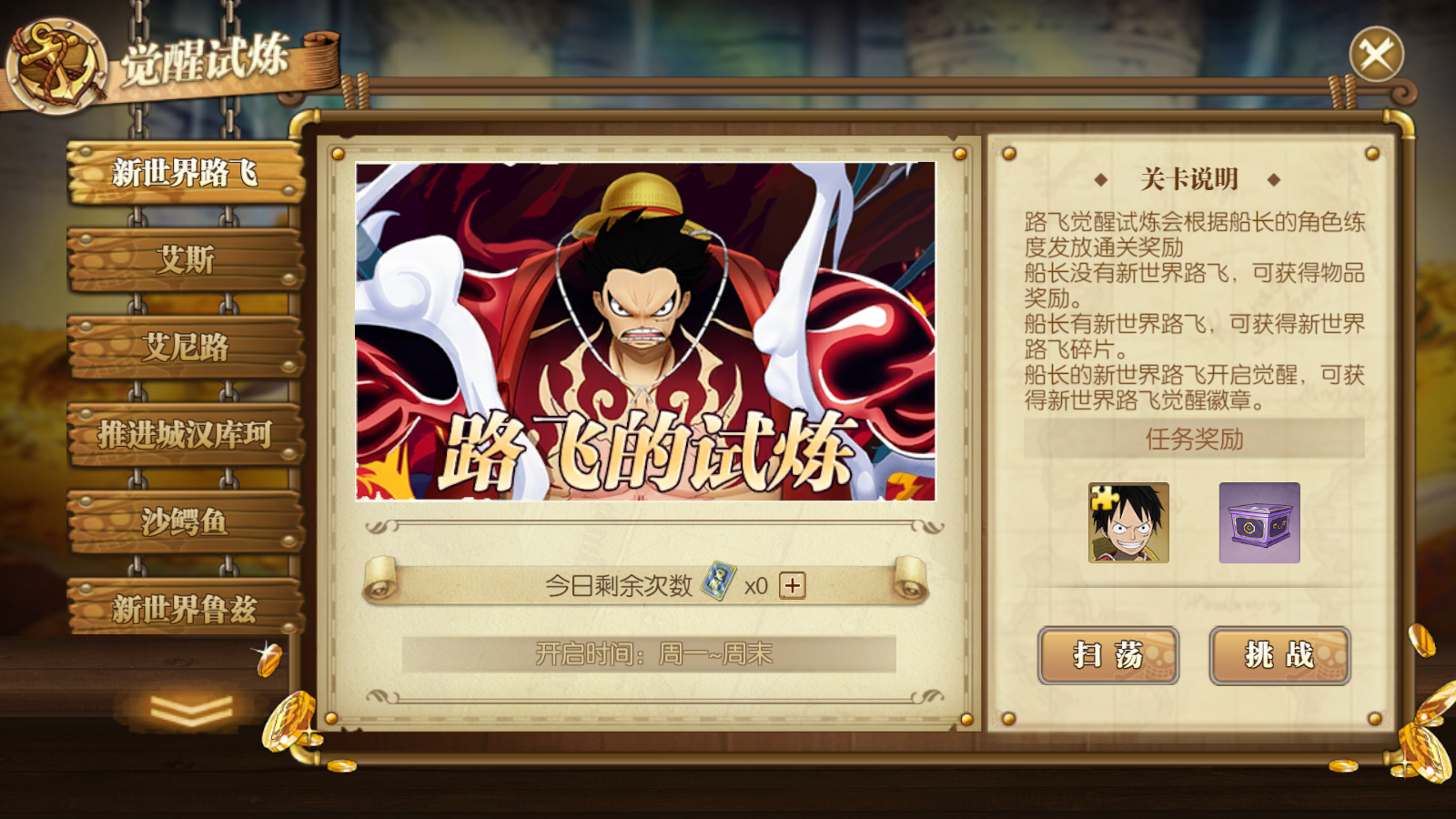 觉醒路飞 推荐主线★☆☆☆☆ 天梯★☆☆☆☆