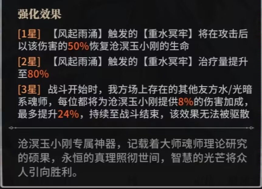 (神器一星效果和二星效果并没有额外提升该魂师的输出能力,主要是提升生存能力,但也有严重的弊端,例如吃体系触发不了,或者是本身就是满血状态,增益无效)