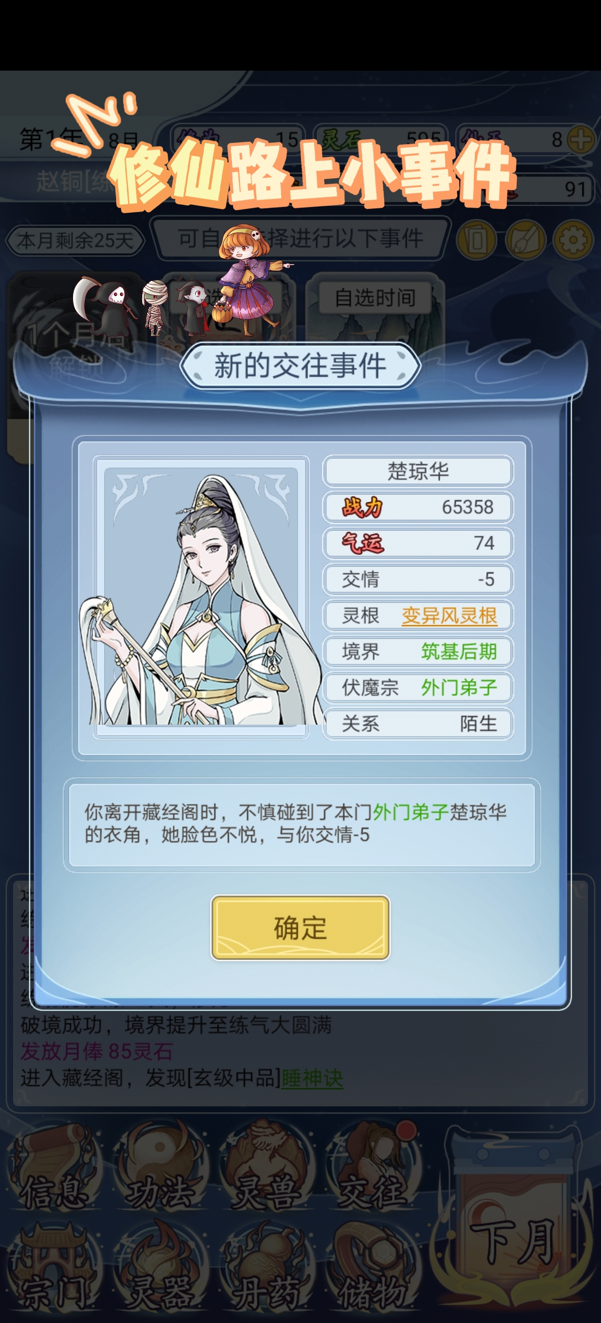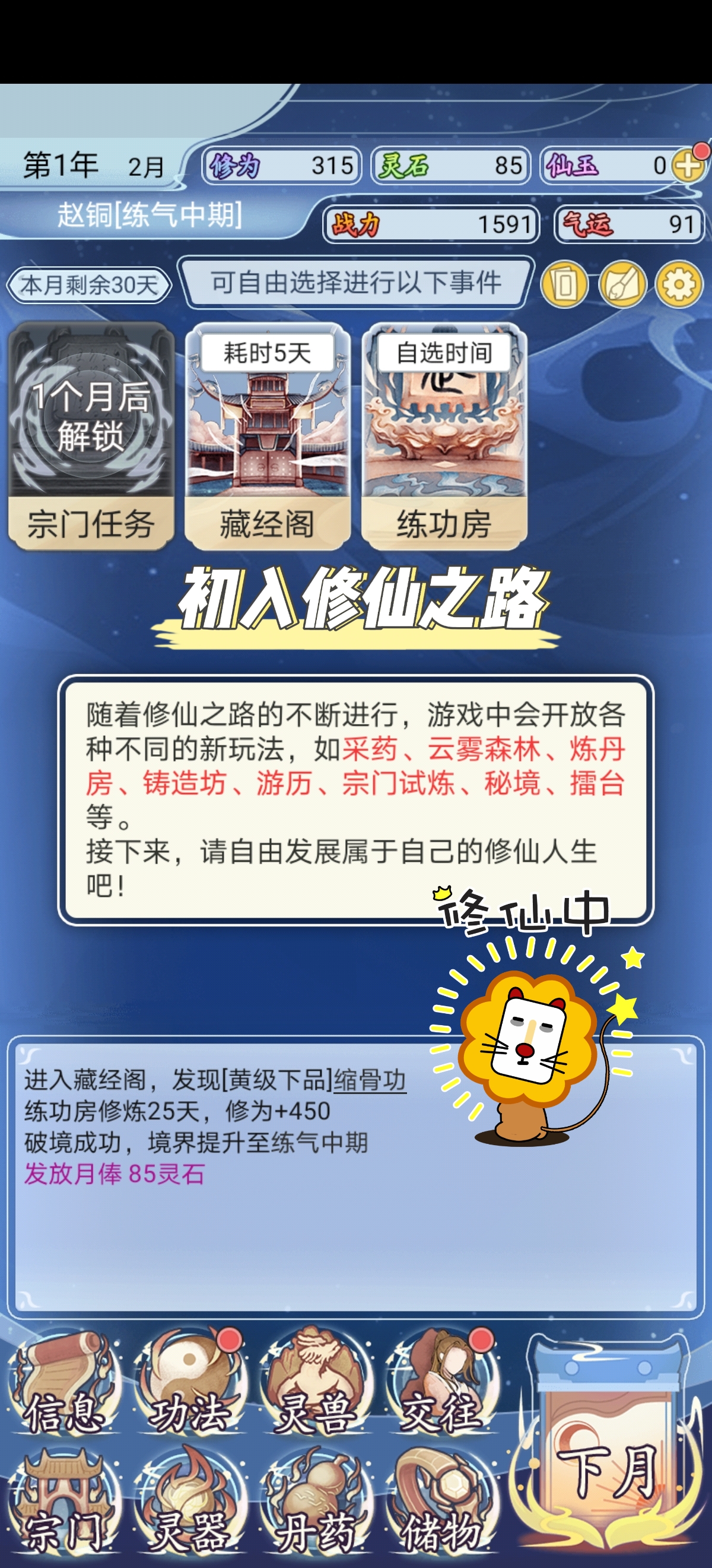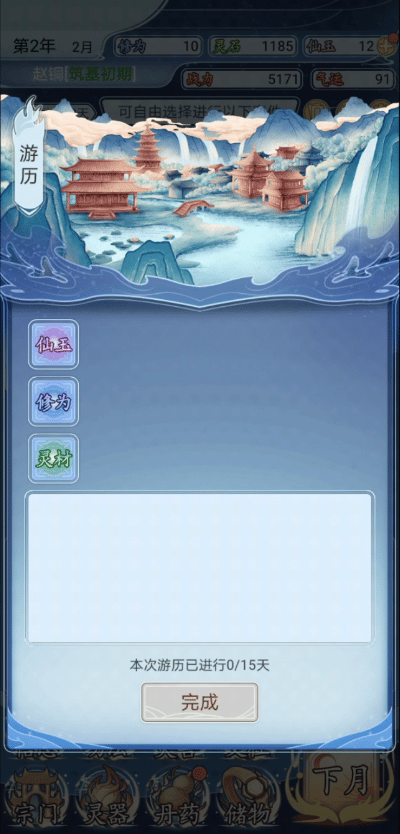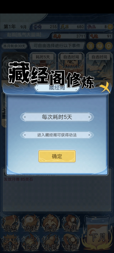 同样的时间里你可以👉选择修炼功法,或选择炼丹炼器,或选择游历三界,亦或选择结识道侣等等……