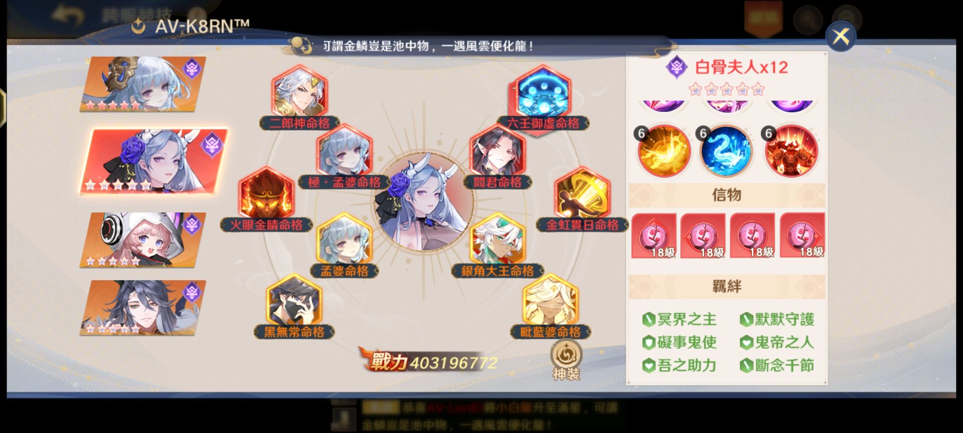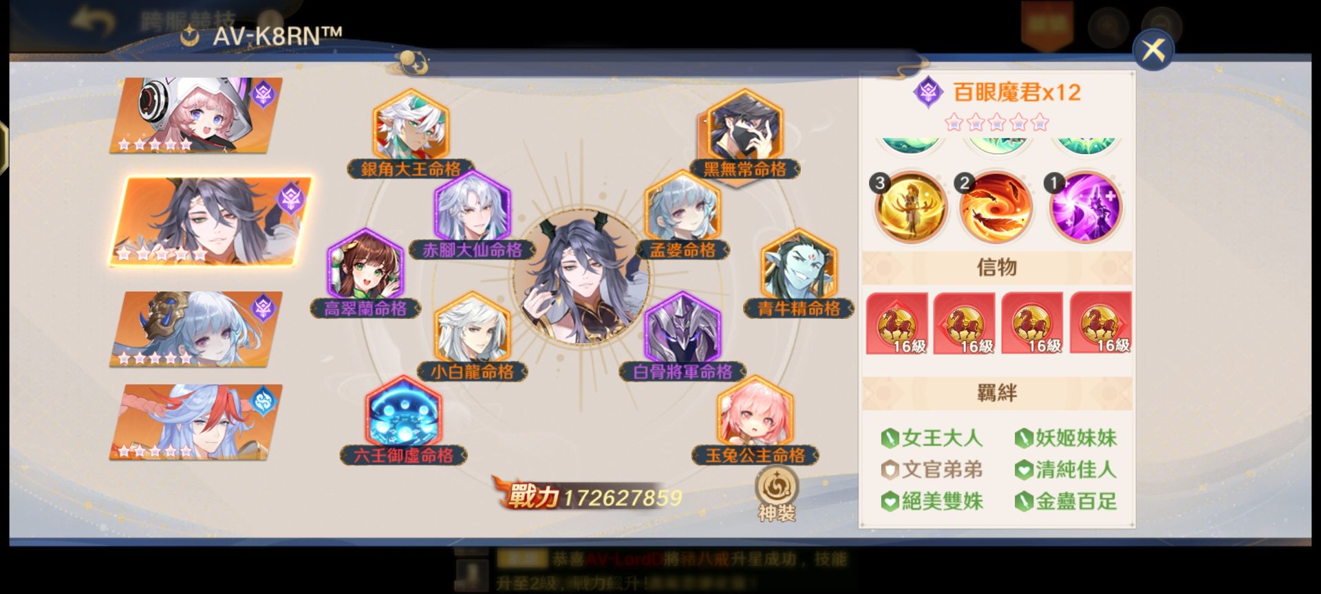 大佬可以帮忙看一下吗,前期我没有找攻略,导致我现在感觉红色的突破石有一些吃紧,现在想把阎君换下我需要换谁。 还有就是我要不要像你这样阵容来,主要我的法宝已经买了很多了,感觉有一些蒙了[图片评论]