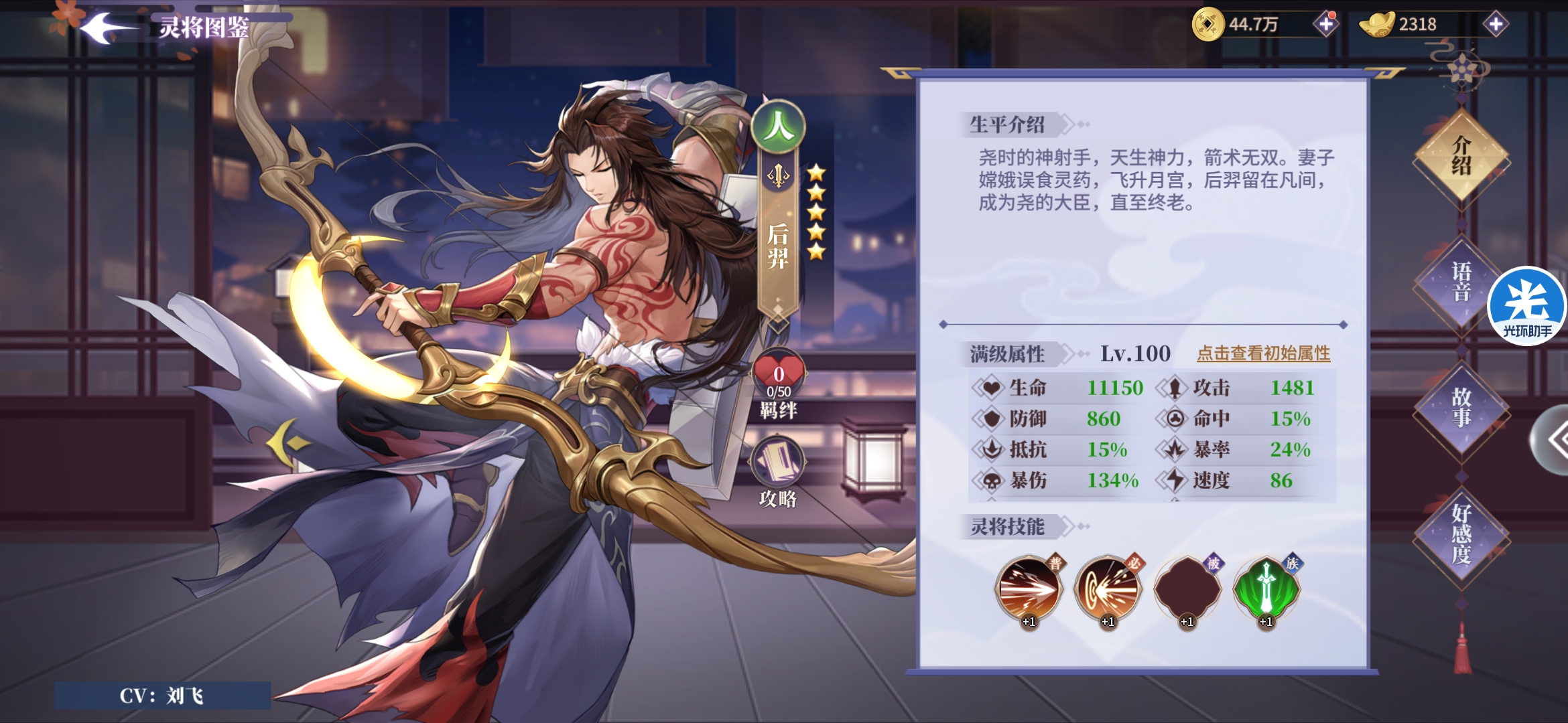 后羿作为攻击型灵将,拥有多段追击+普攻增伤+普攻增攻,攻击次数极多可以配合神兵装备十步一杀概率眩晕,但后羿本身不适合人族灼烧流,自成体系,可以配合李靖幽王以反击追击为主,在配合自身普攻增伤和幽王普攻增伤,普攻伤害极高,利用多段普攻保证伤害